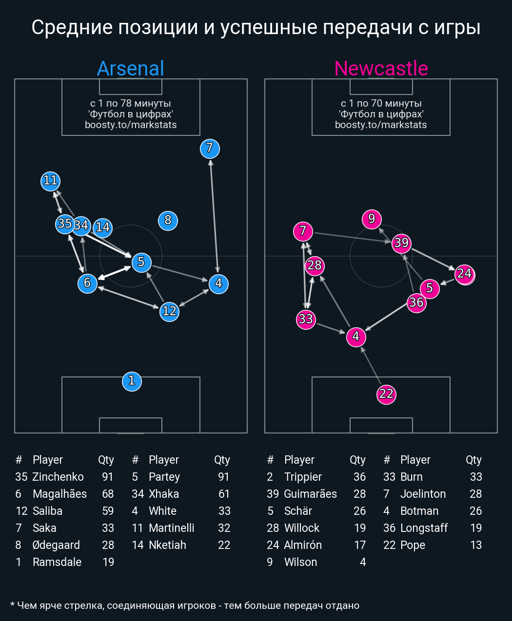 Футбол в цифрахСтатистика матча Arsenal vs Newcastle