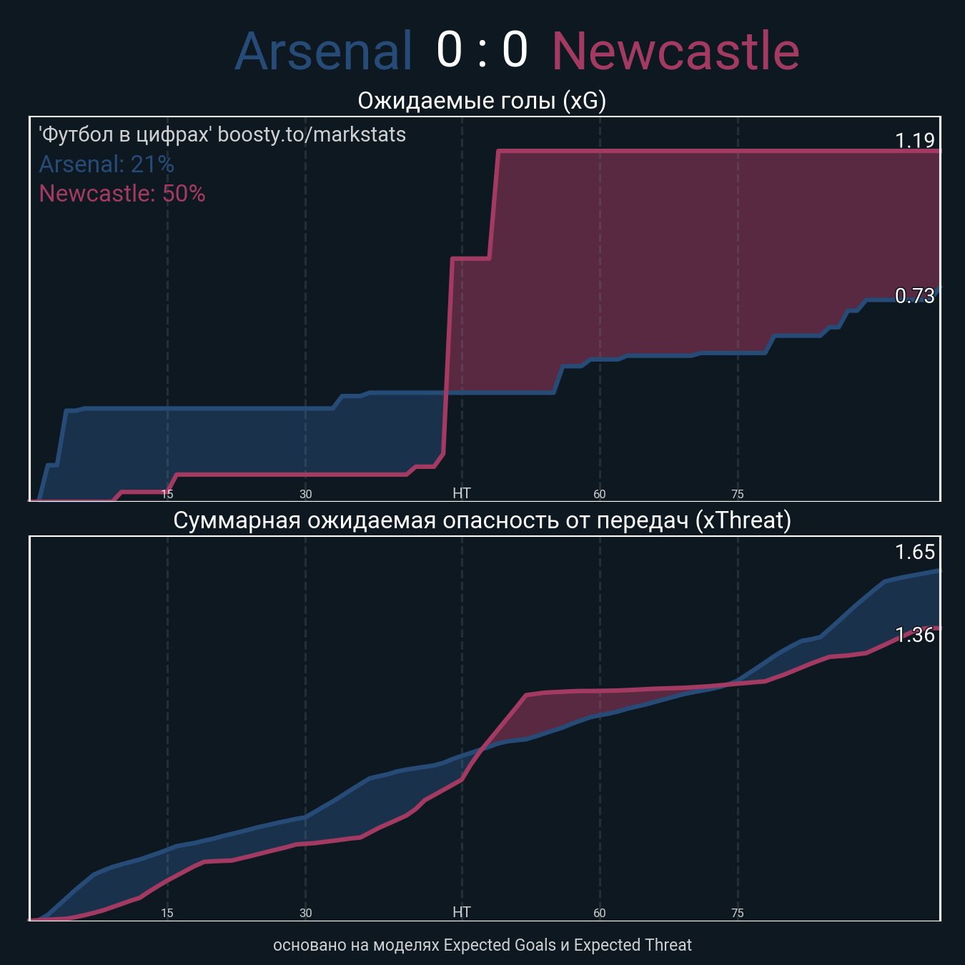 ▪ Ожидаемые голы (NPxG): 0.73 - 1.19