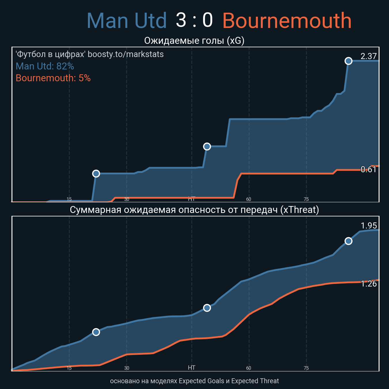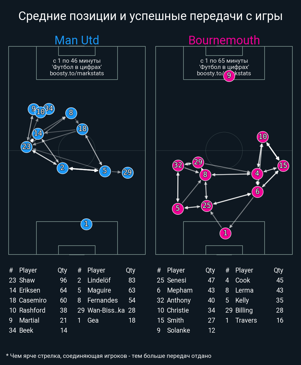 Футбол в цифрахСтатистика матча Man Utd vs Bournemouth