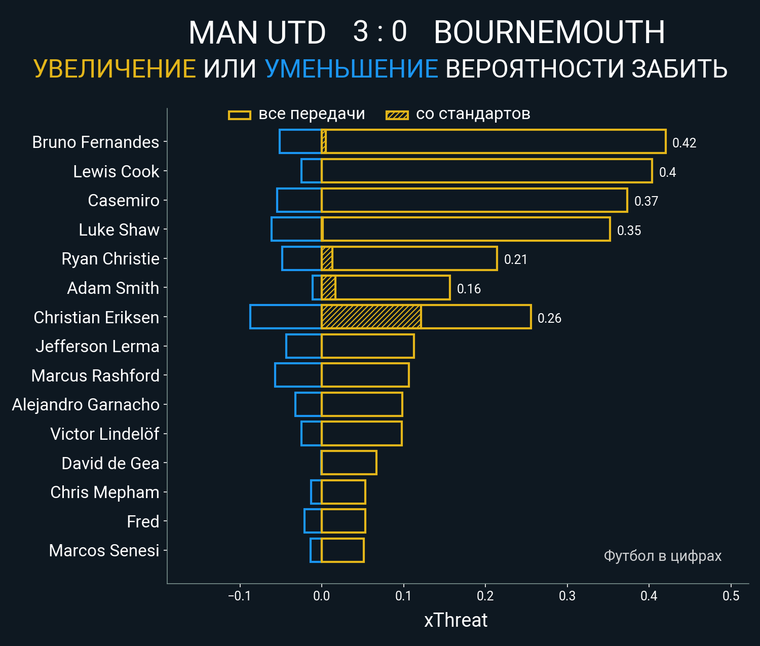 ▪ 0.2 очка xT (+0.01 со стандартов)