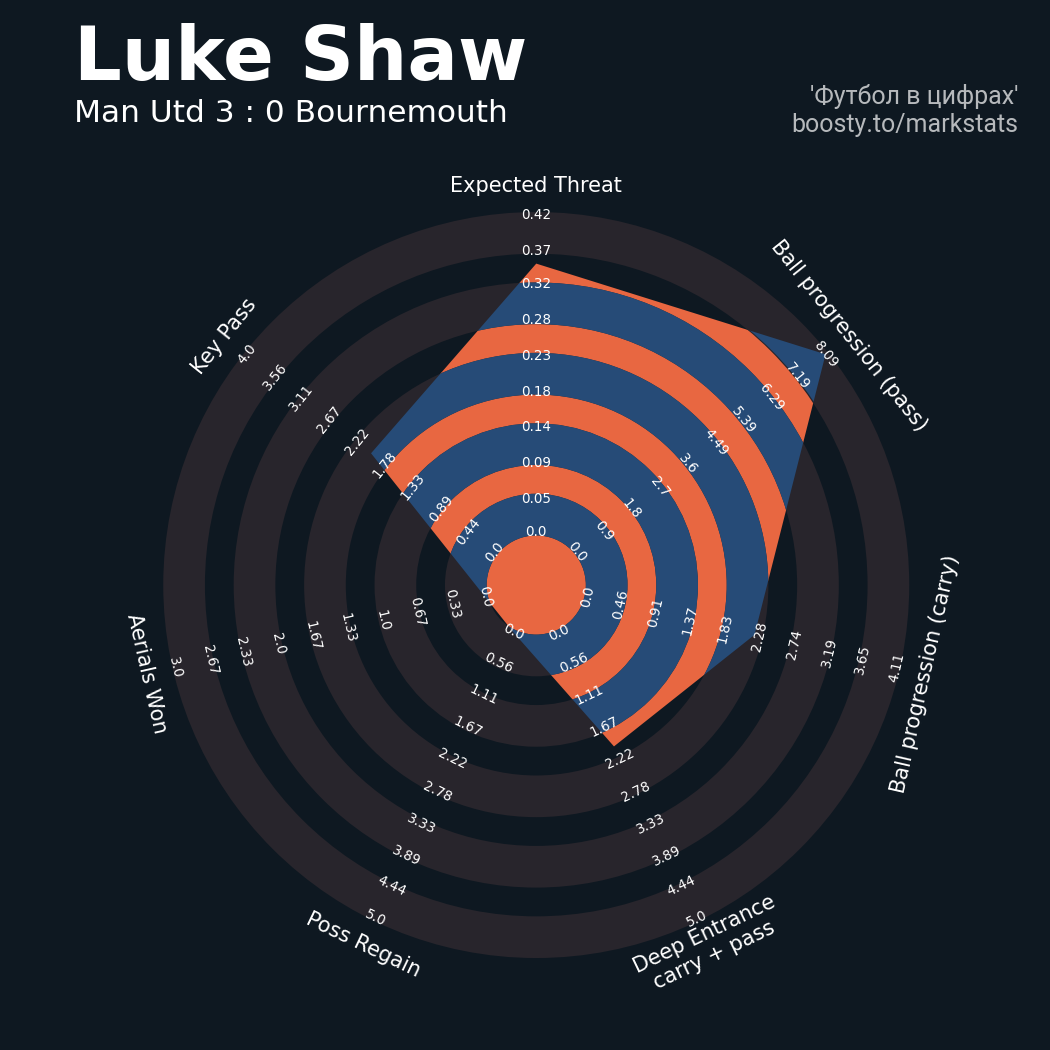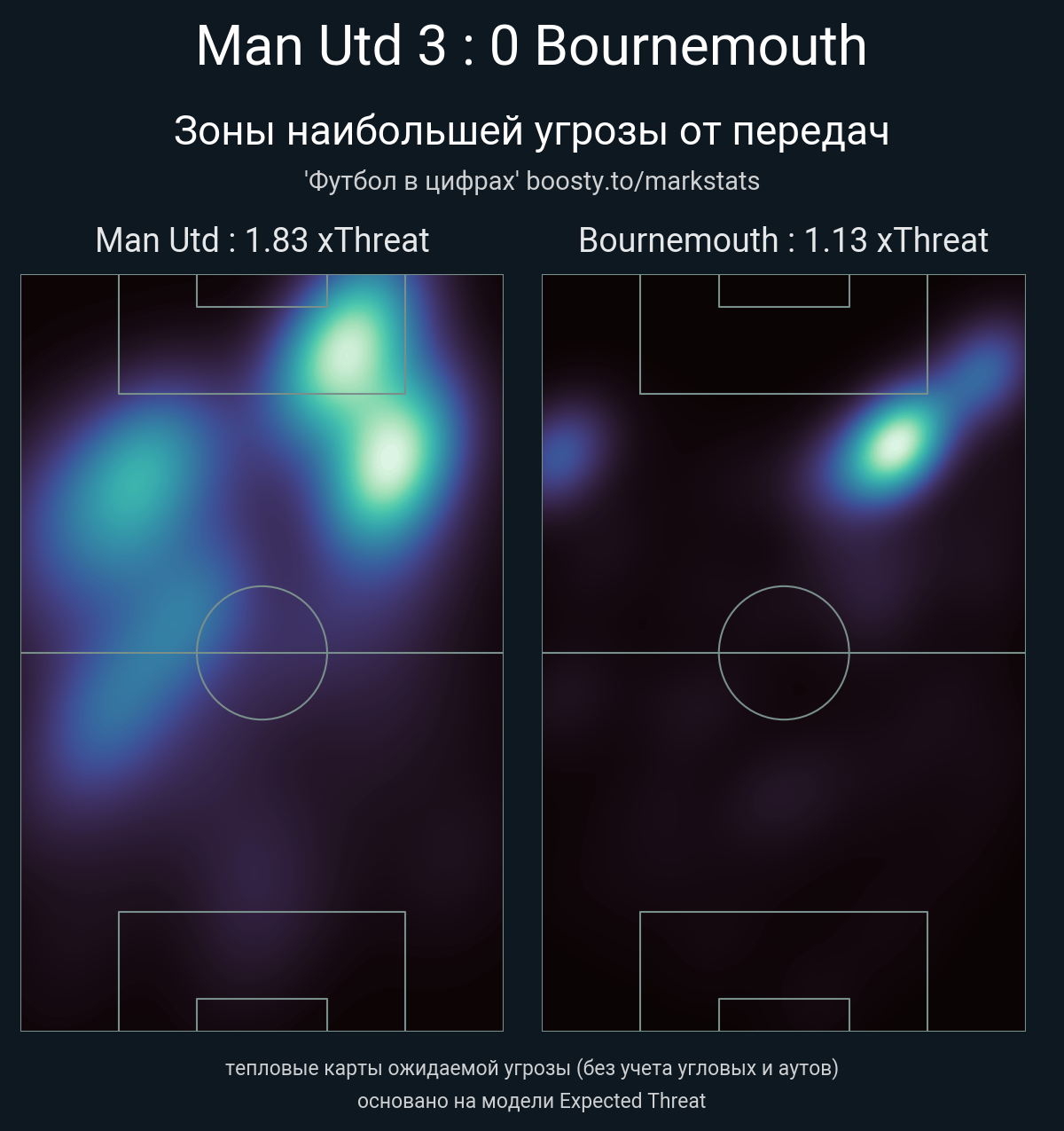 ▪ xThreat без учета угловых: 1.83 - 1.13