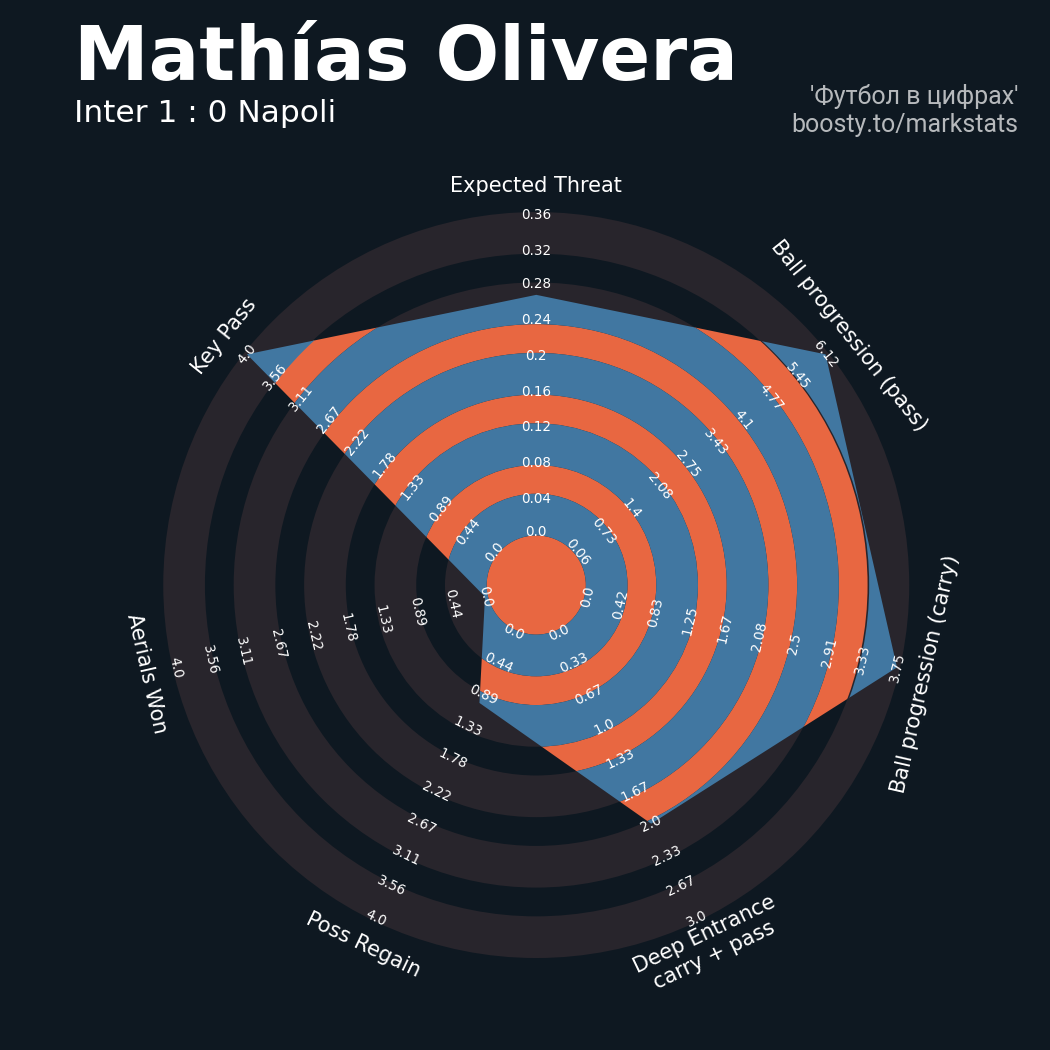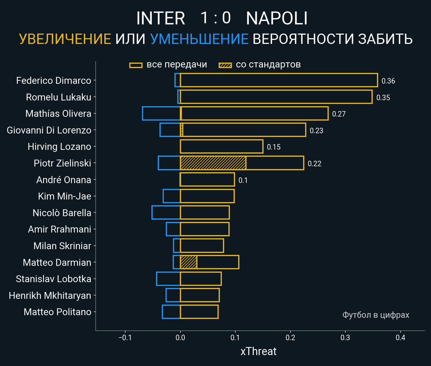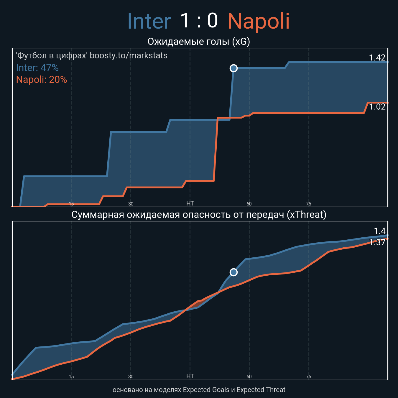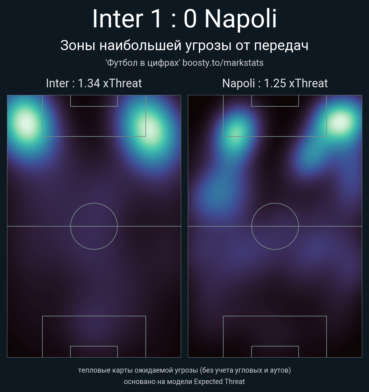 ▪ xThreat без учета угловых: 1.34 - 1.25