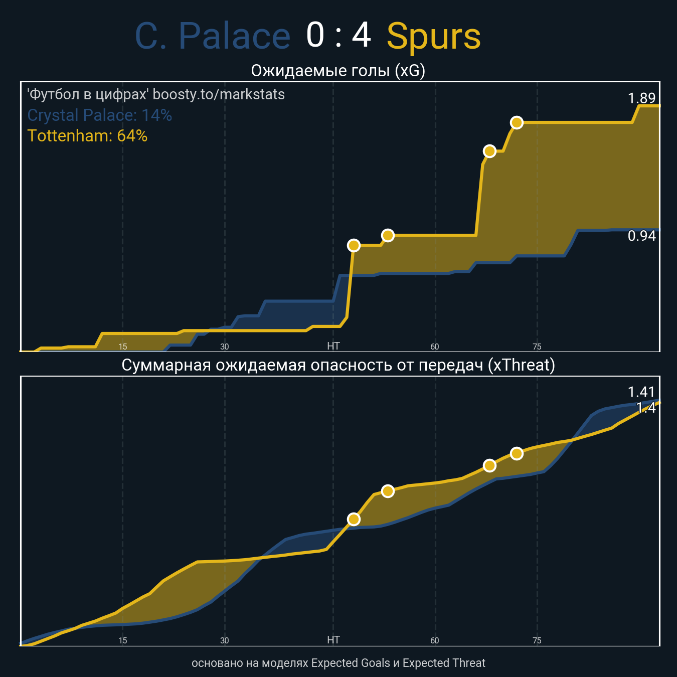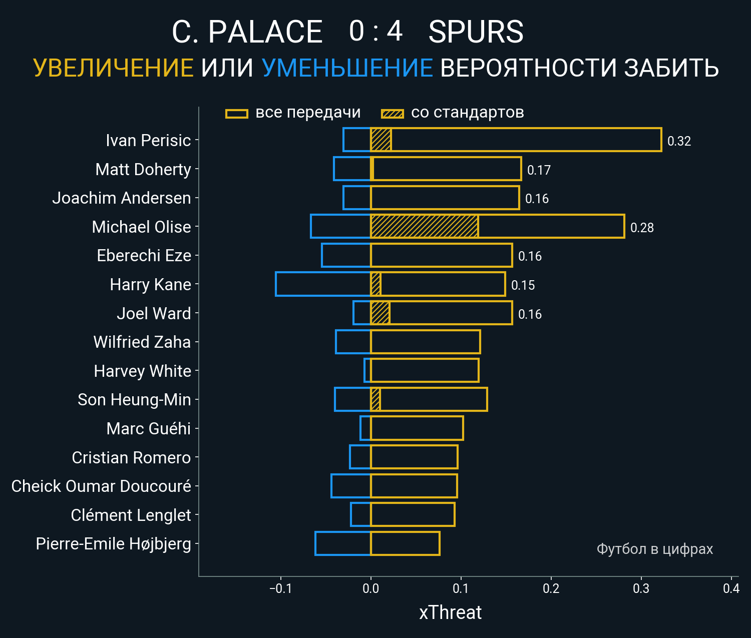 Футбол в цифрахСтатистика матча Crystal Palace vs Tottenham