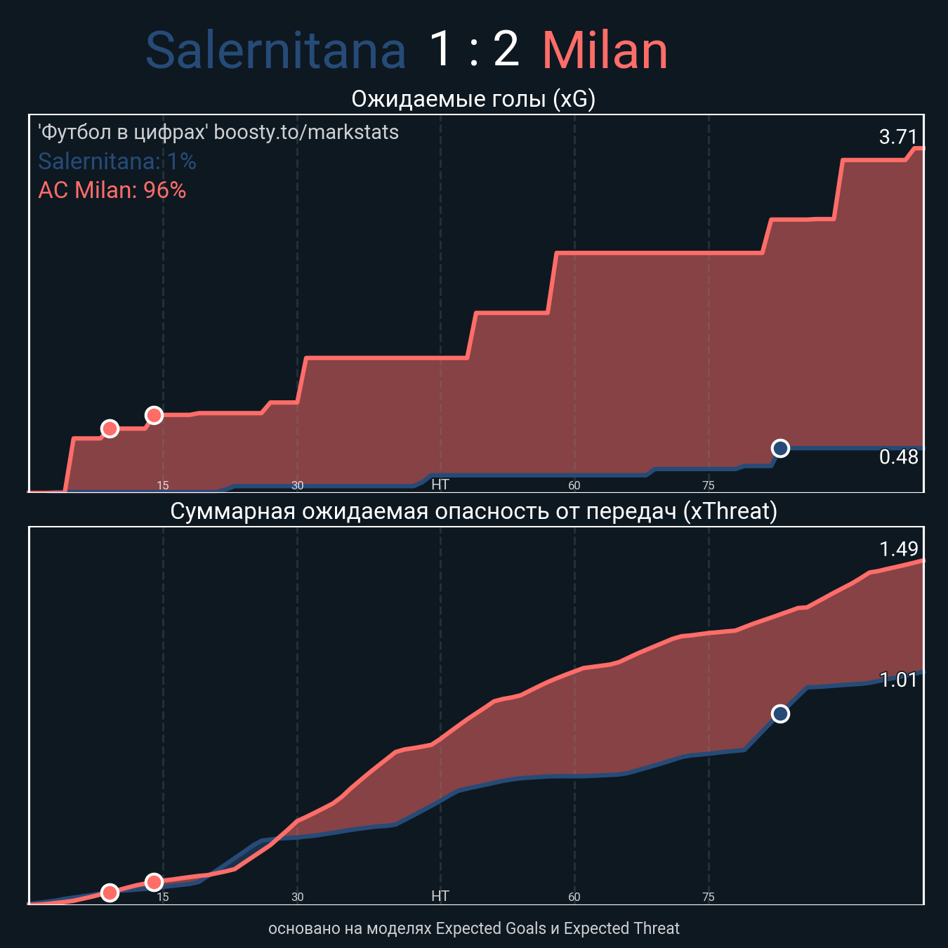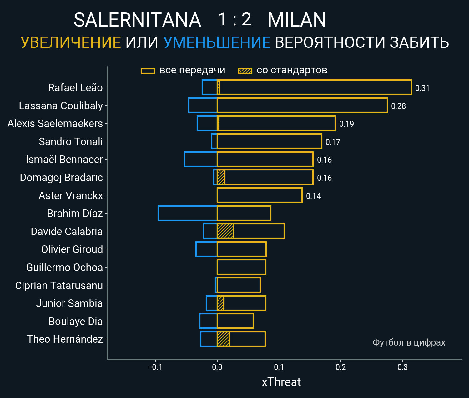 Футбол в цифрахСтатистика матча Salernitana - AC Milan