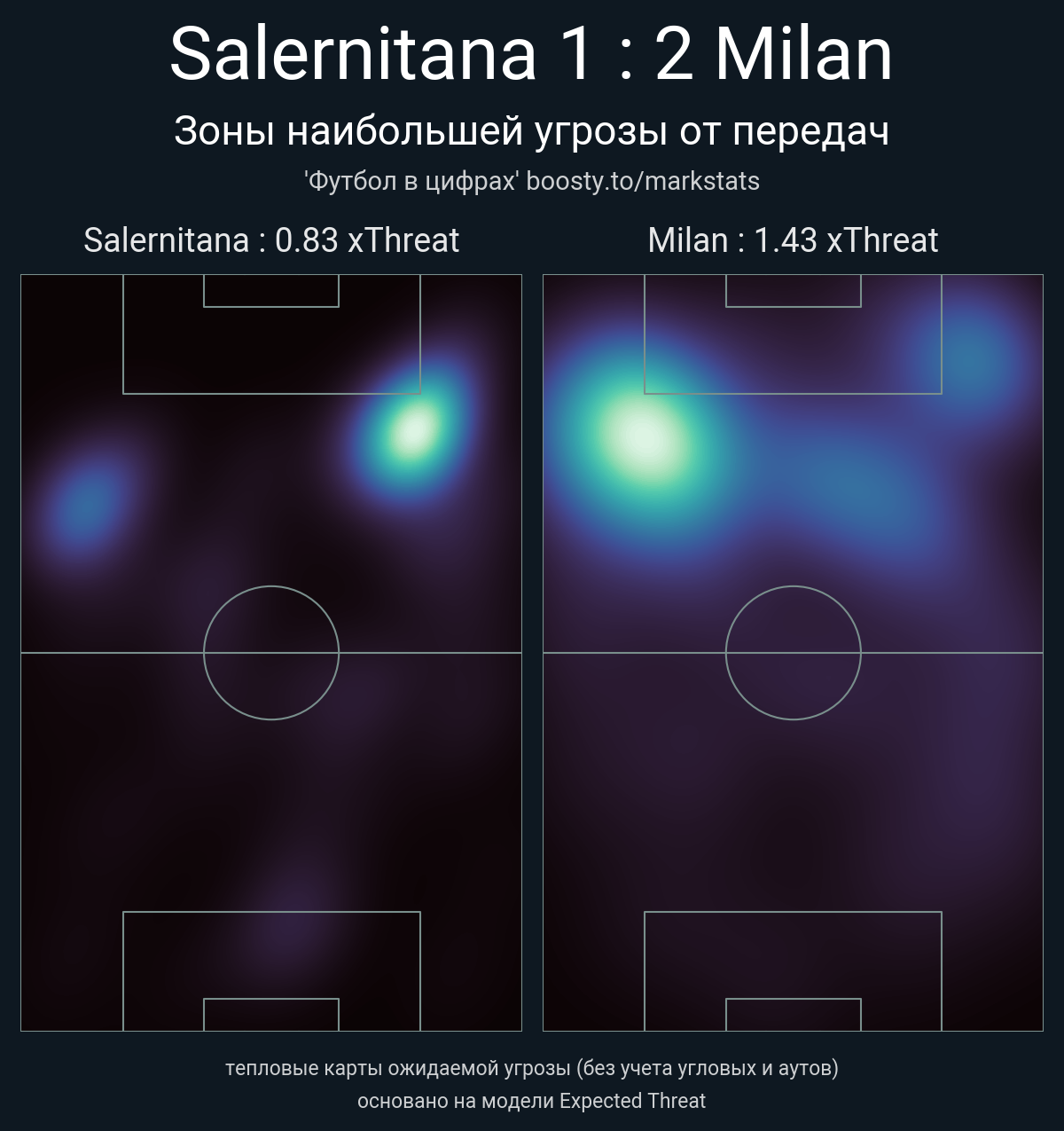 ▪ xThreat без учета угловых: 0.83 - 1.43