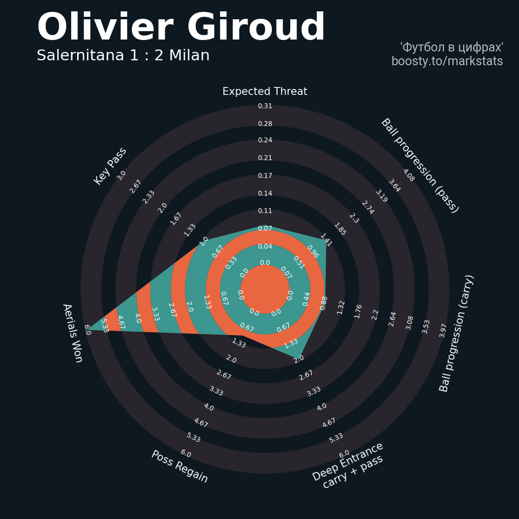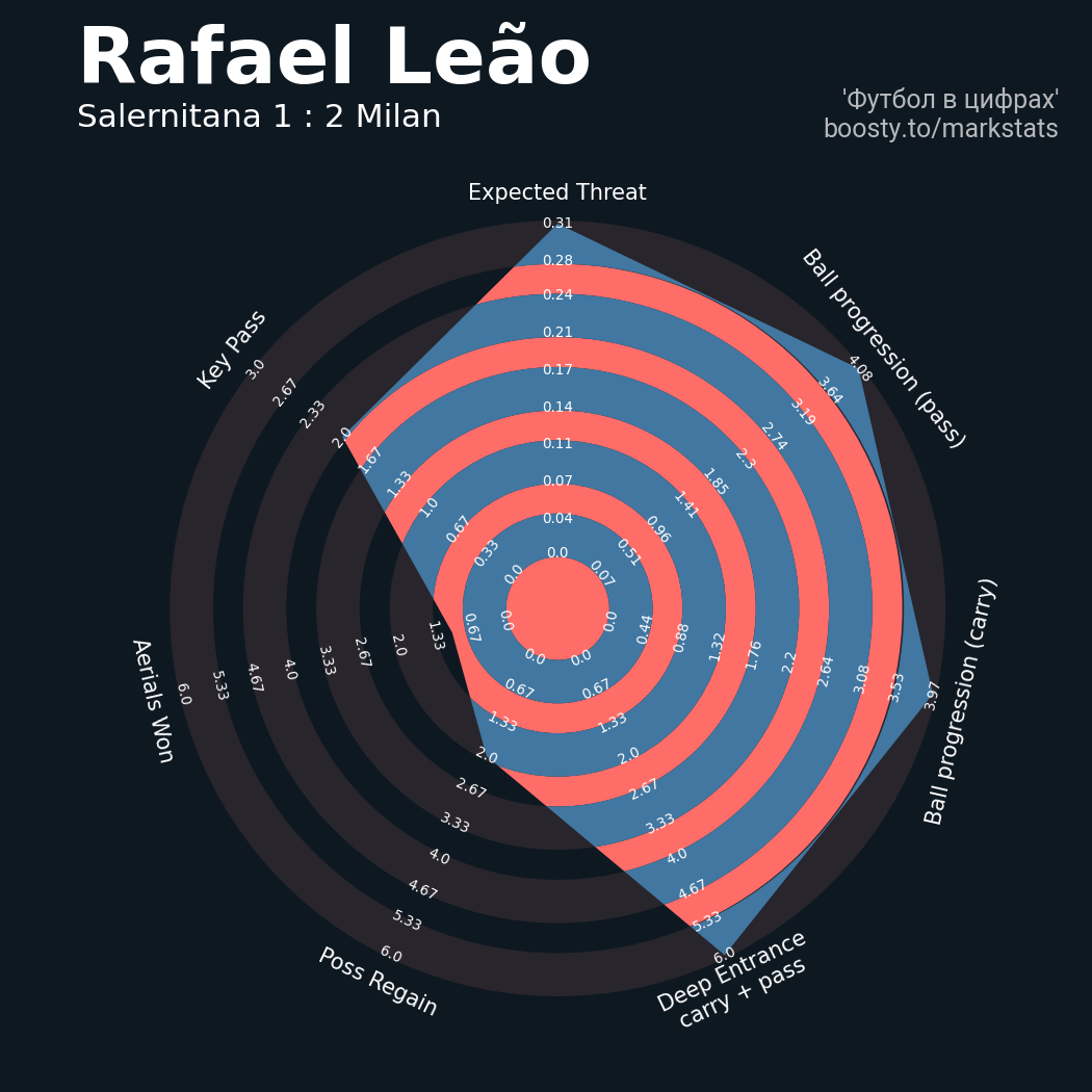 ▪ 18 успешных передач из 30 попыток (2 под удар, 7 с продвижением, 10 на трети соперника)