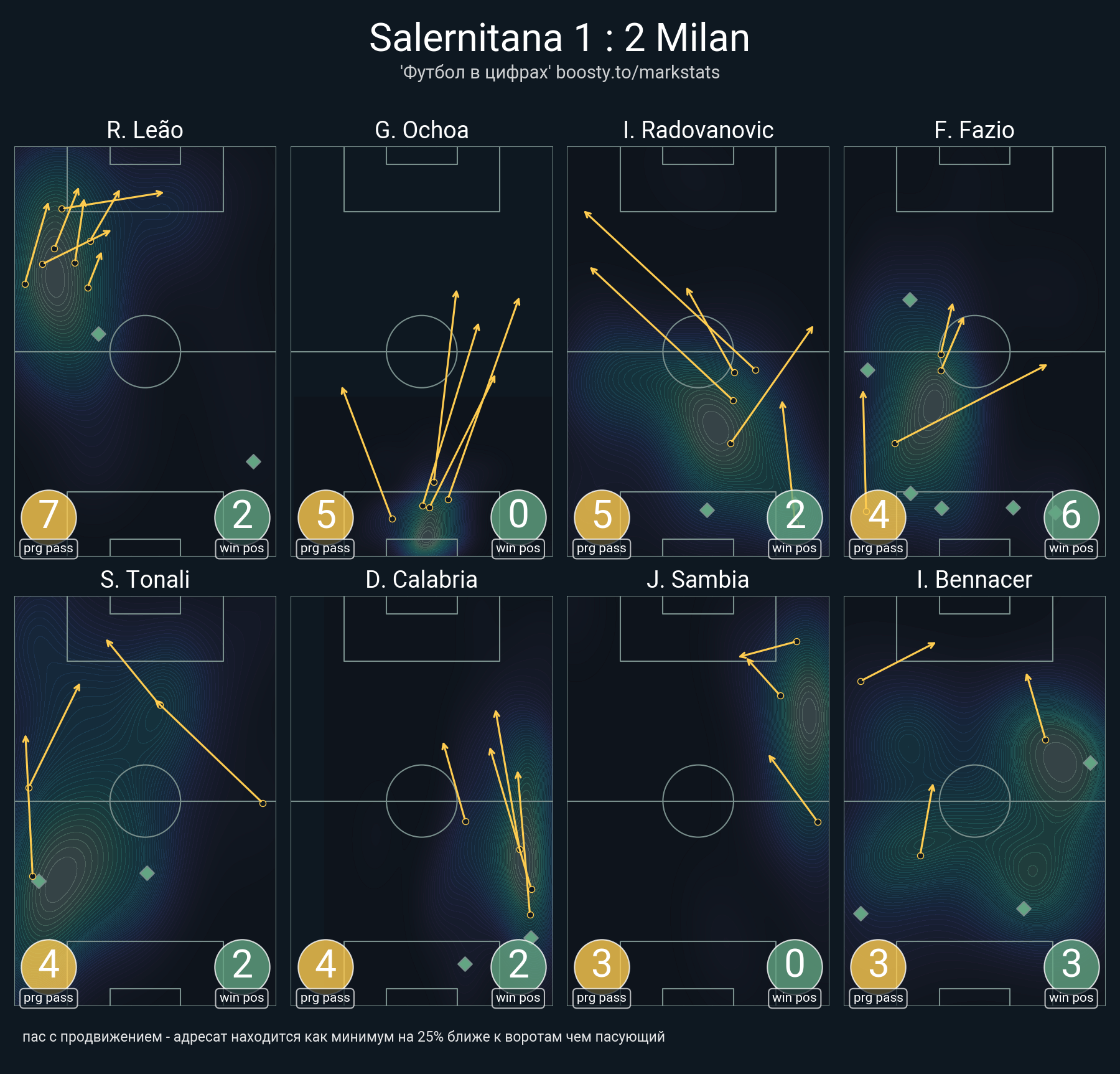 ▪ 19 успешных передач из 25 попыток (1 ассист, 3 под удар, 2 с продвижением, 5 на трети соперника)