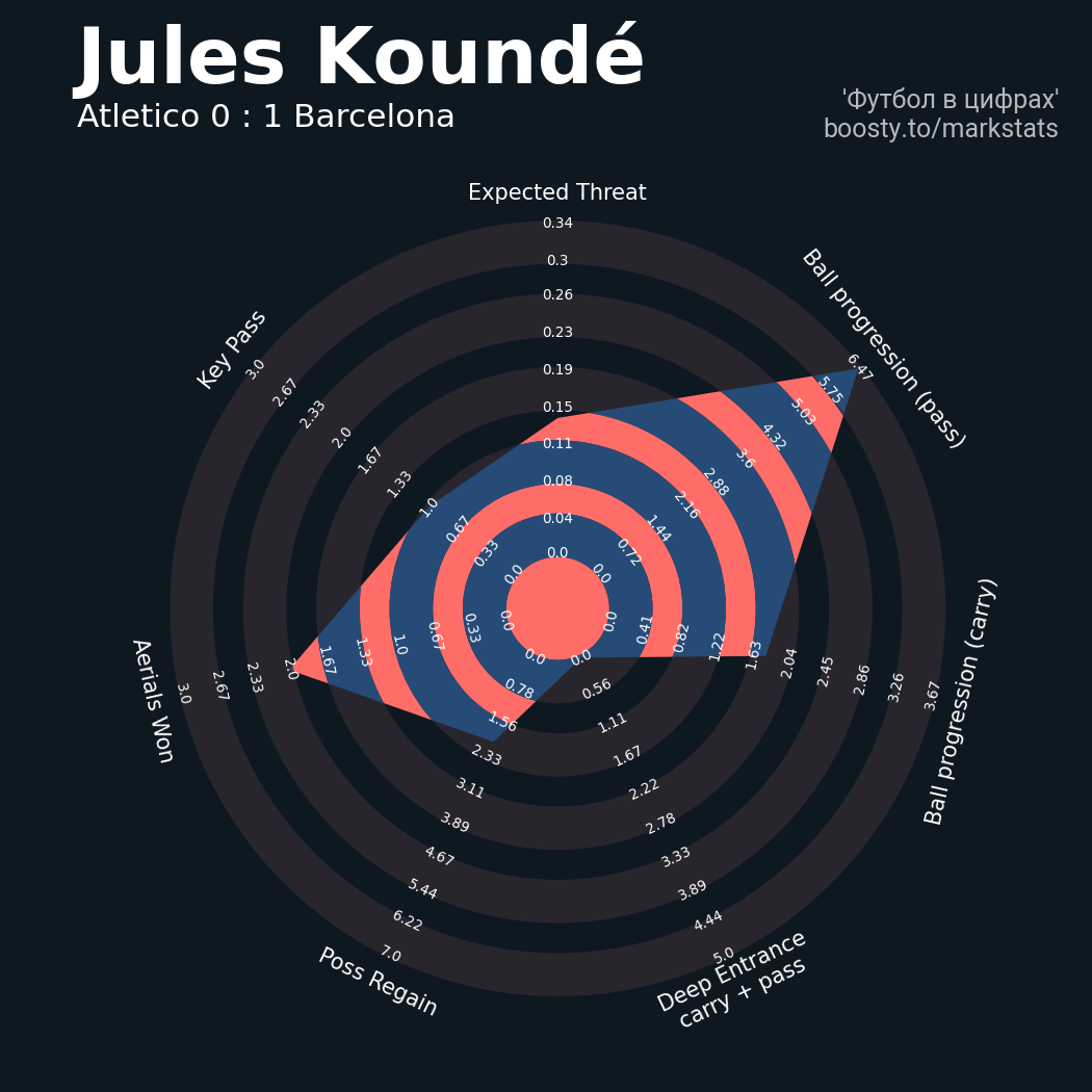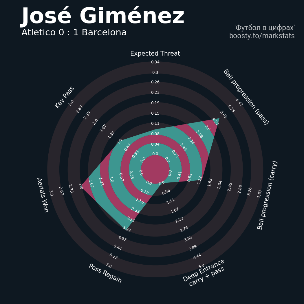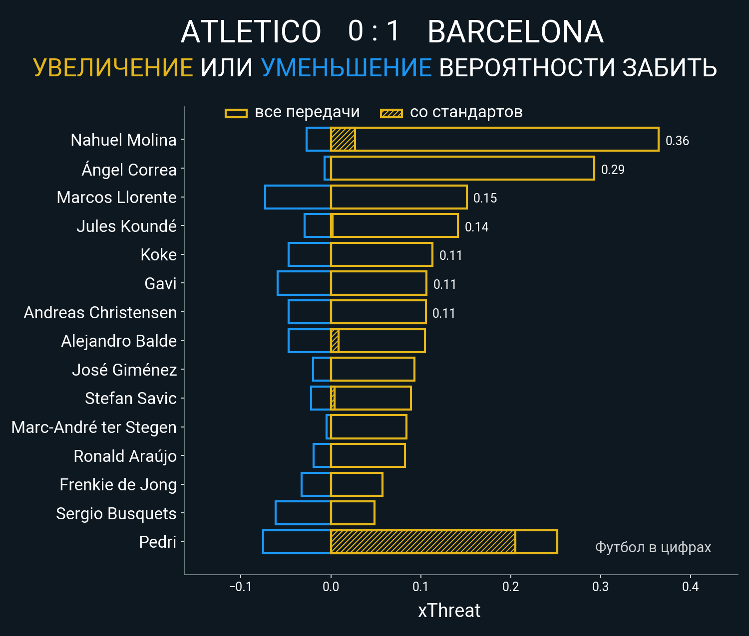 ▪ xThreat без учета угловых: 1.36 - 0.83