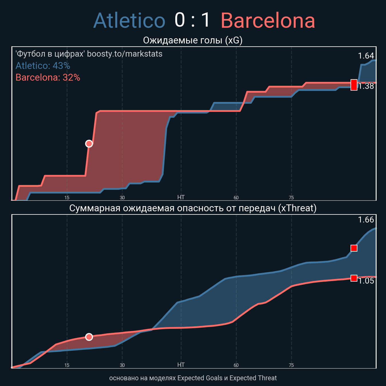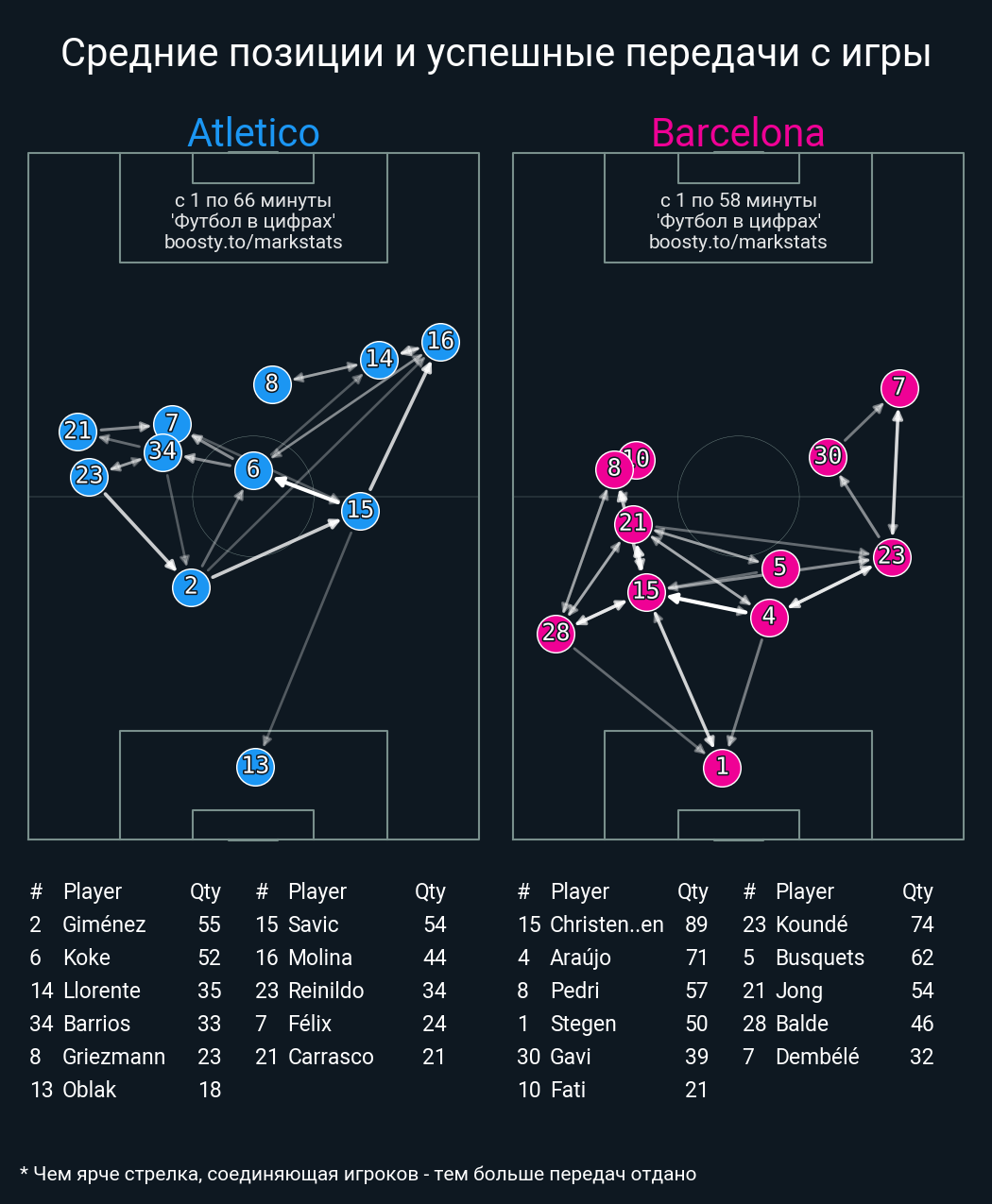 Футбол в цифрахСтатистика матча Atletico - Barcelona