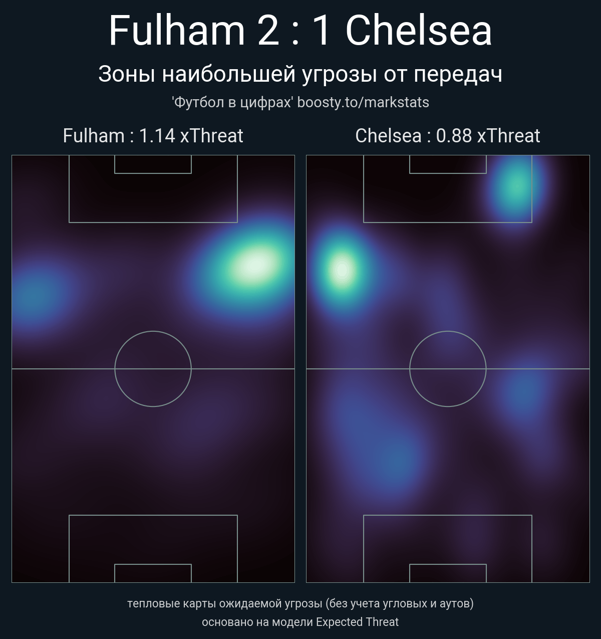 ▪ xThreat без учета угловых: 1.14 - 0.88
