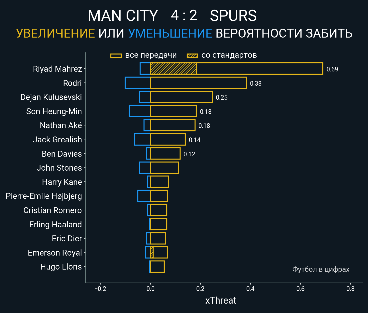 Футбол в цифрахСтатистика матча Man City vs. Tottenham