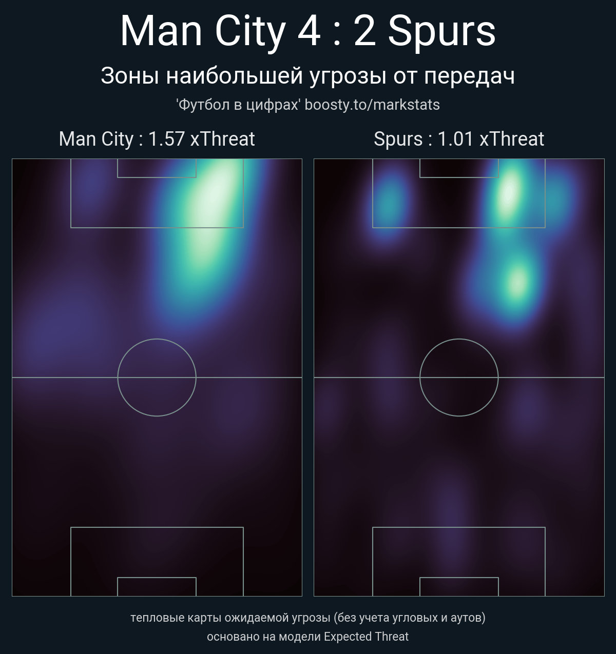 ▪ xThreat без учета угловых: 1.57 - 1.01