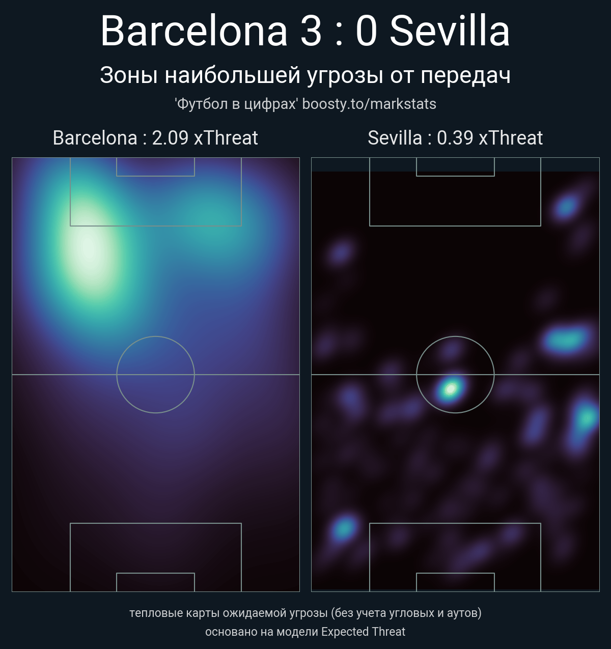 ▪ xThreat без учета угловых: 2.09 - 0.39