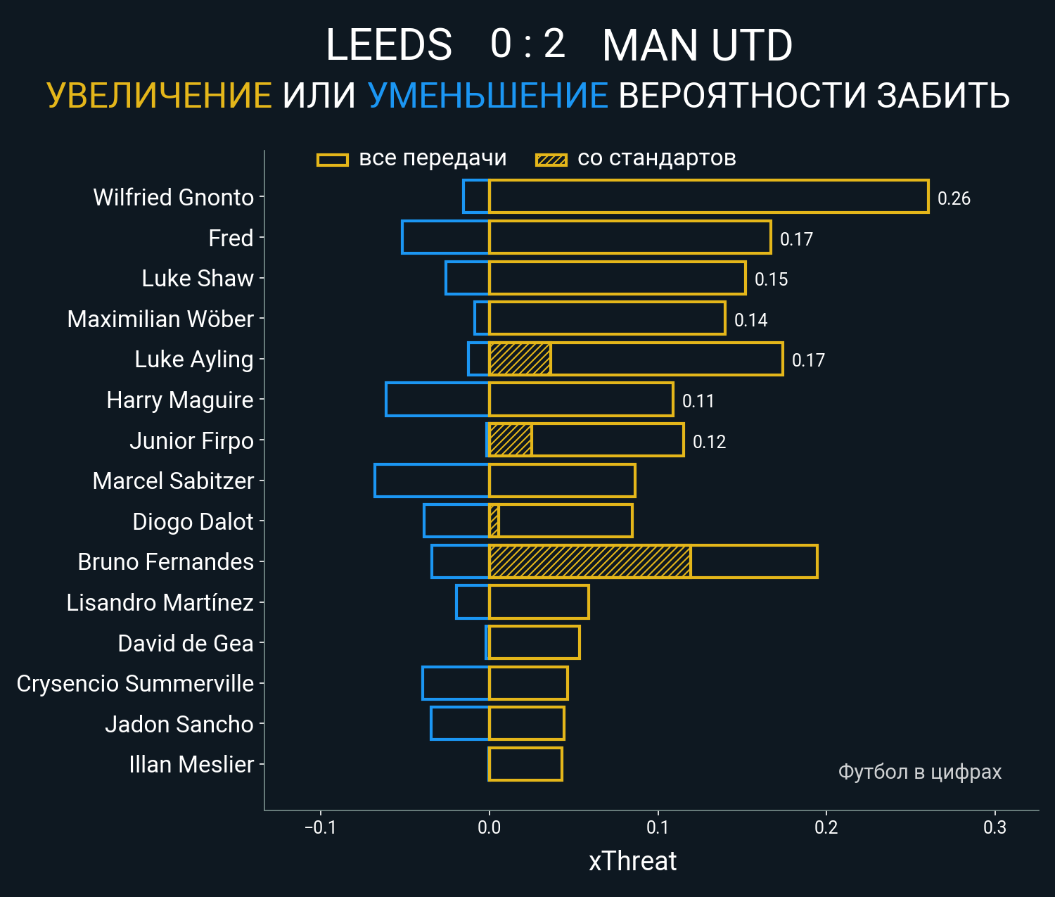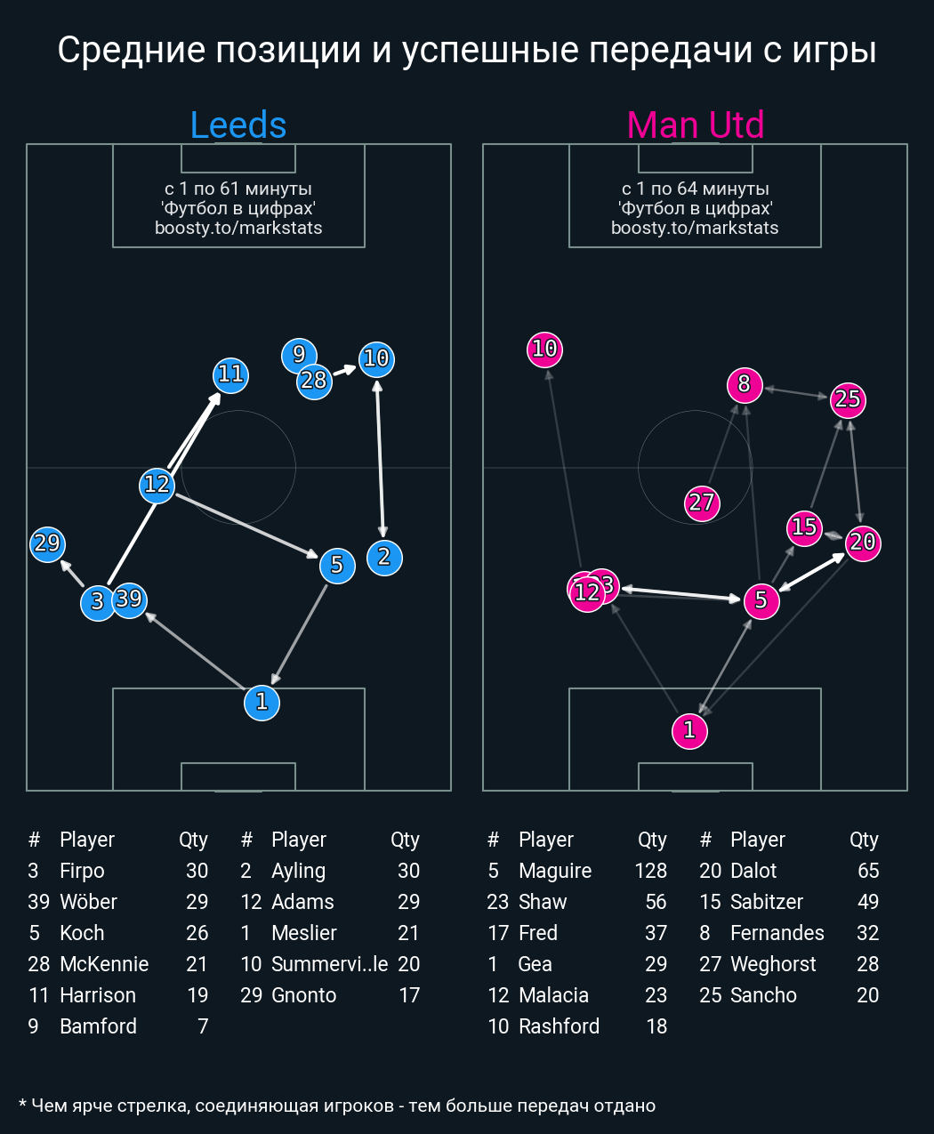 Футбол в цифрахСтатистика матча Leeds - Man Utd