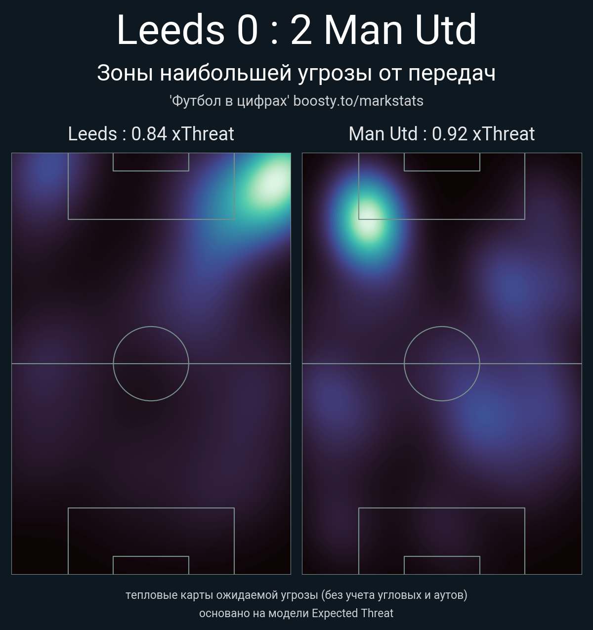 ▪ xThreat без учета угловых: 0.84 - 0.92