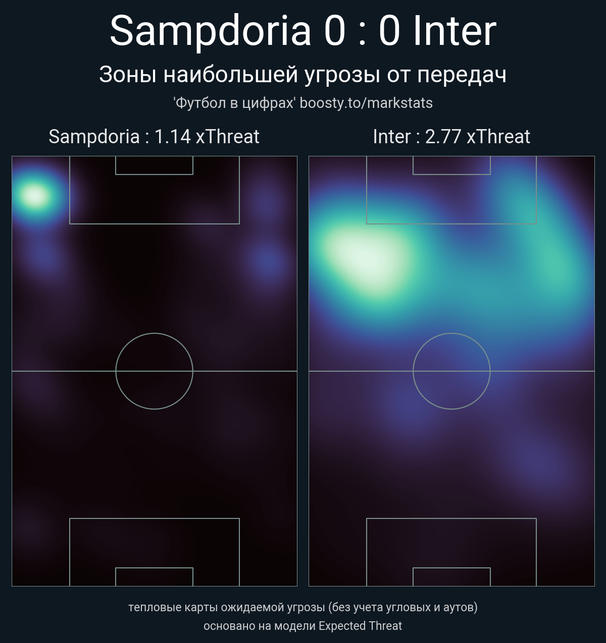 ▪ xThreat без учета угловых: 1.14 - 2.77