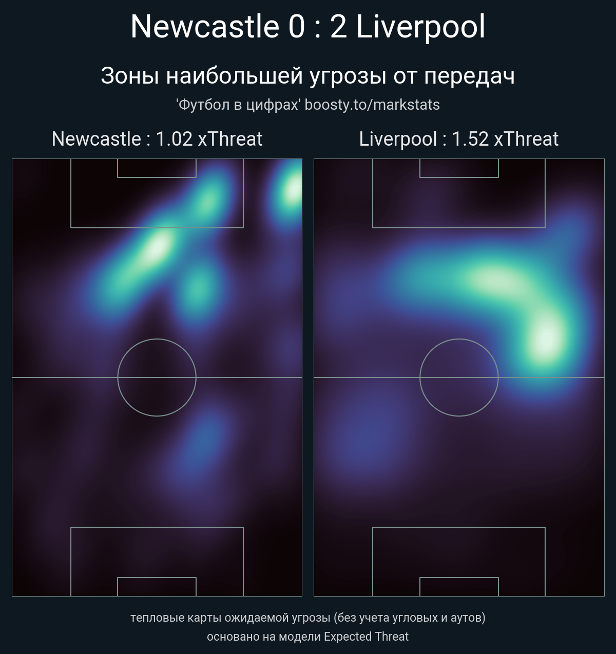 ▪ xThreat без учета угловых: 1.02 - 1.52