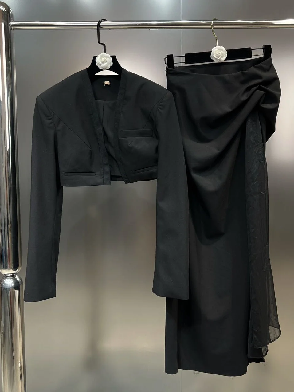 WcOQHqaenHere you can buy 2023 Autumn New Collection V Neck Short Jacket High Waist Ruched Irregular Long Skirt Two Piece Set Tracksuits GL358 with free delivery to your post office.