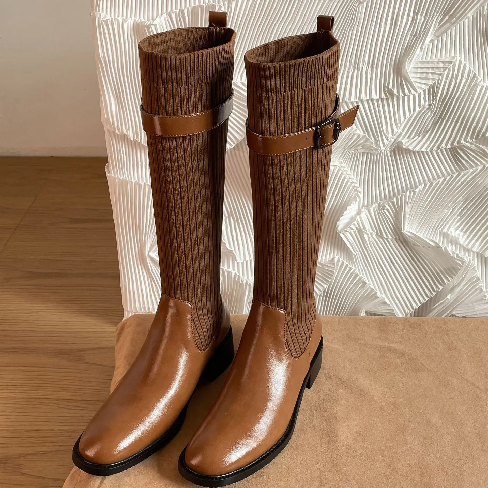 "2023 Foreign Trade Pointed Thin Heel Ultra High Heel Side Zipper Rivet Pin Buckle Rhinestone Large Knee Length Boots High Heels" * Buy Now With Free Shipping Just For $86