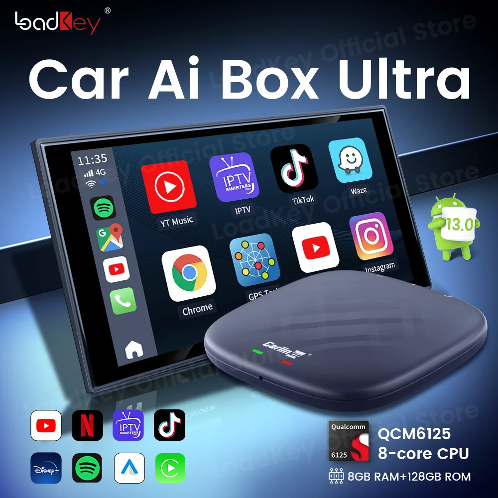2023 LoadKey Android 13 Car Ai Box Wireless CarPlay Anroid Auto Adapter QCM6125 Chip 8+128G Youtube Spotify AppStore GPS 4G LTE - Купить с бесплатной доставкой