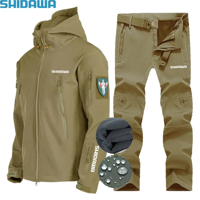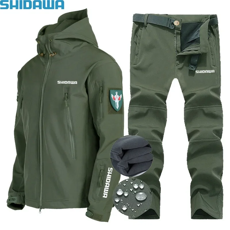 2023 Men'sAutumn Winter Waterproof Fleece Soft Shell Fishing Suits Outdoor Windproof Coldproof Breathable Ski Mountaineering Set - Купить с бесплатной доставкой