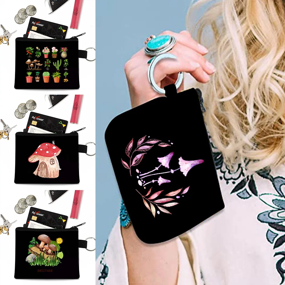 "2023 Mini Coin Purse Card Pack Wallet Women Cosmetic Bags Key Money Storage Pouch Small Canvas Makeup Bags Mushroom Print Clutch" * Buy Now Just For 2$