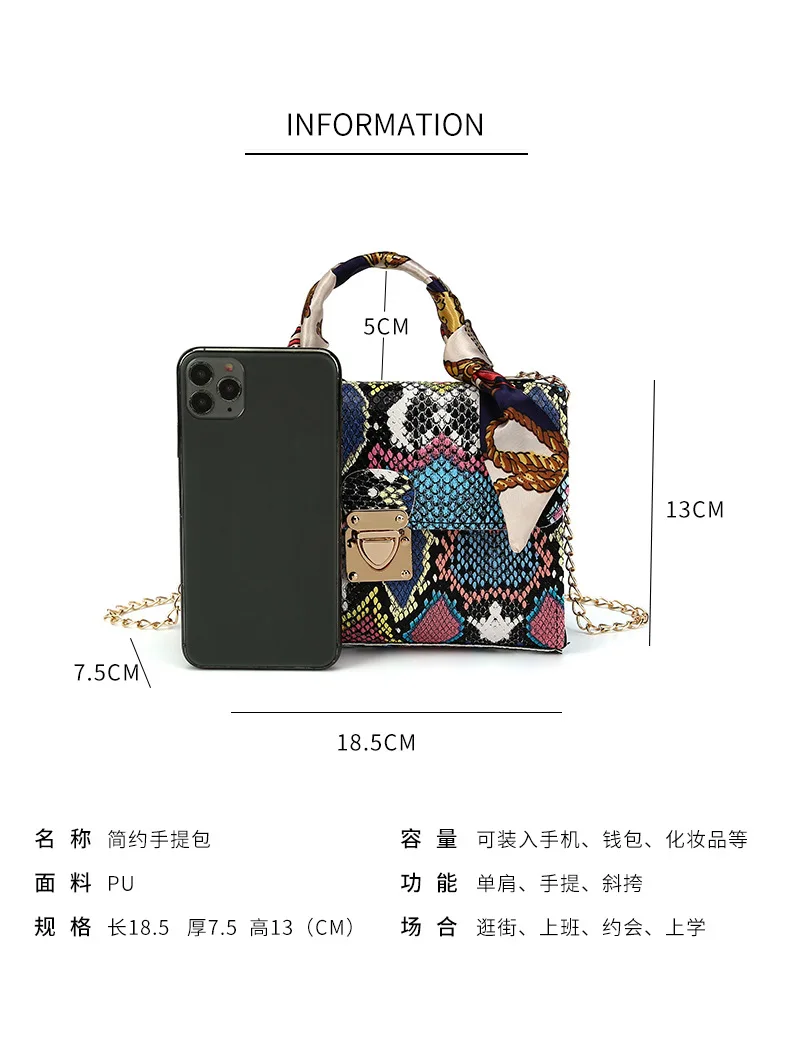 isCBpafwGЗдесь вы сможете купить 2023 New Colorful Snake Pattern Scarf Handbag Metal Chain Shoulder Bag PU Diagonal Straddle Small Square Bag Luxury Designer Bag с бесплатной доставкой до вашего почтового отделения.