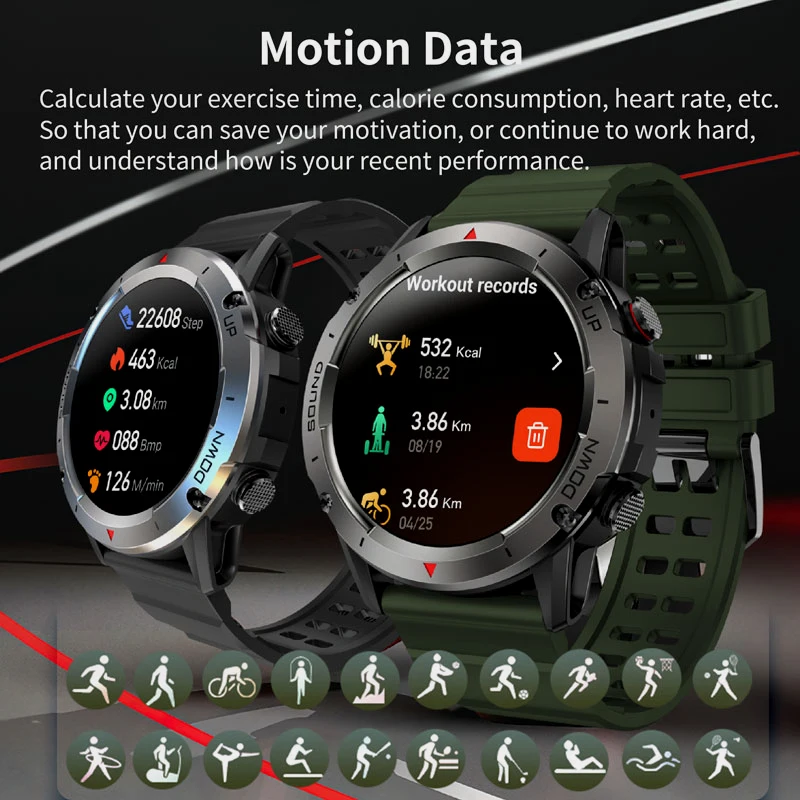 2023 New Smart Watch Men Rugged Military For Android Xiaomi Ios Waterproof Watch Bluetooth Call Outdoor Sports Smartwatch Round - Купить с бесплатной доставкой