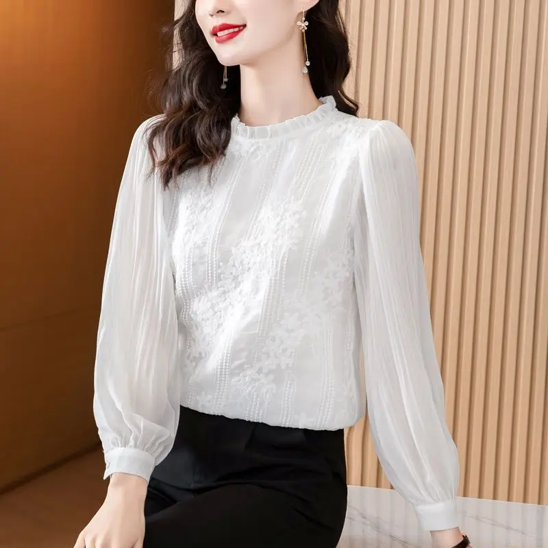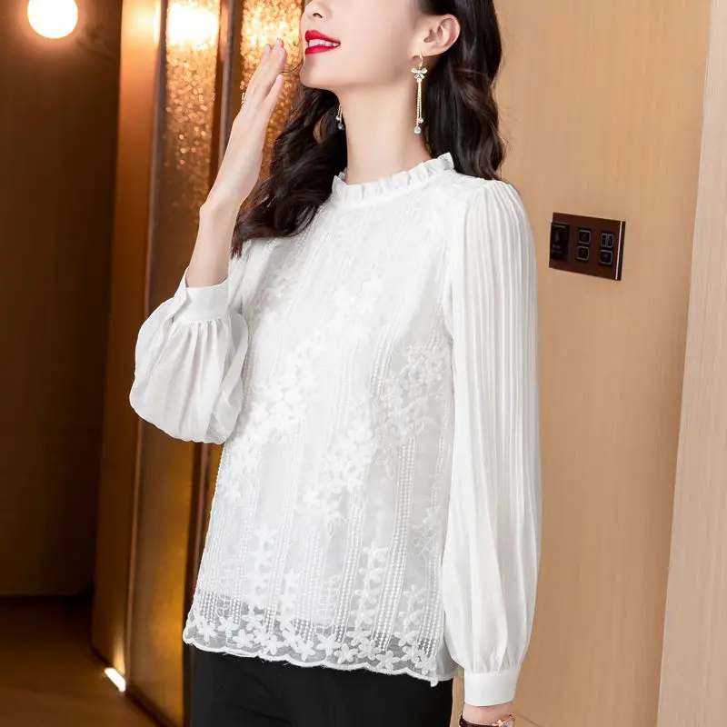 TjrClBwEjLHere you can buy 2023 New Spring and Autumn Commuting Simple Temperament Lace Embroidered Standing Collar Solid Color Versatile Women's Shirt with free delivery to your post office.