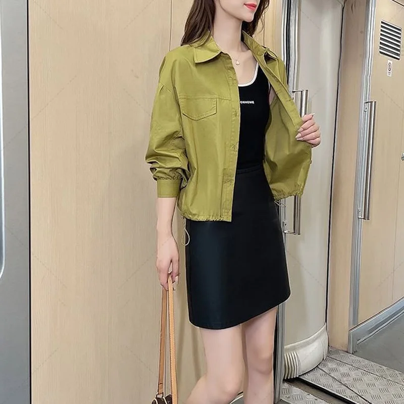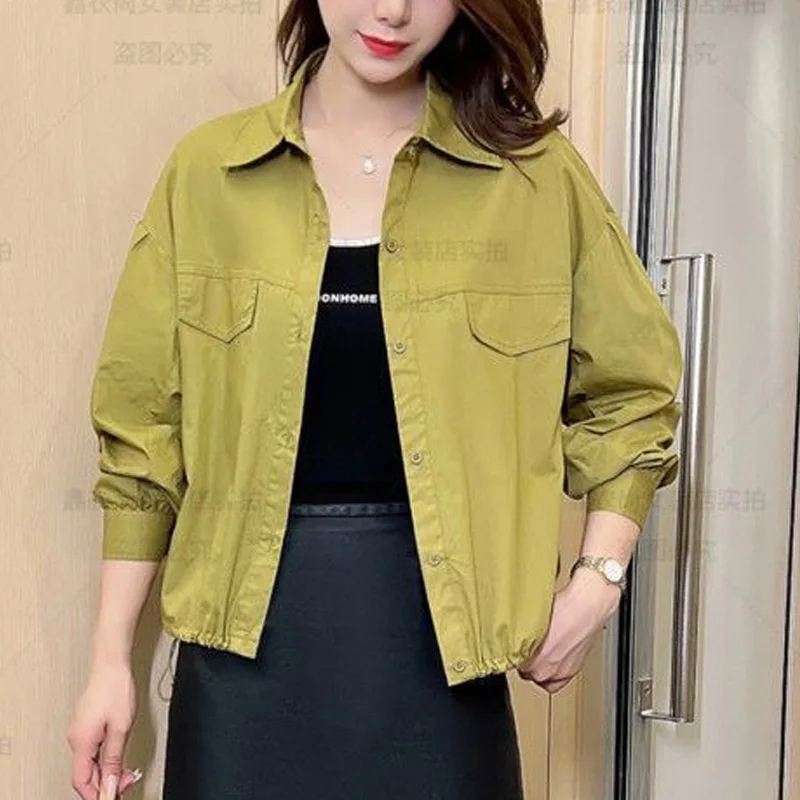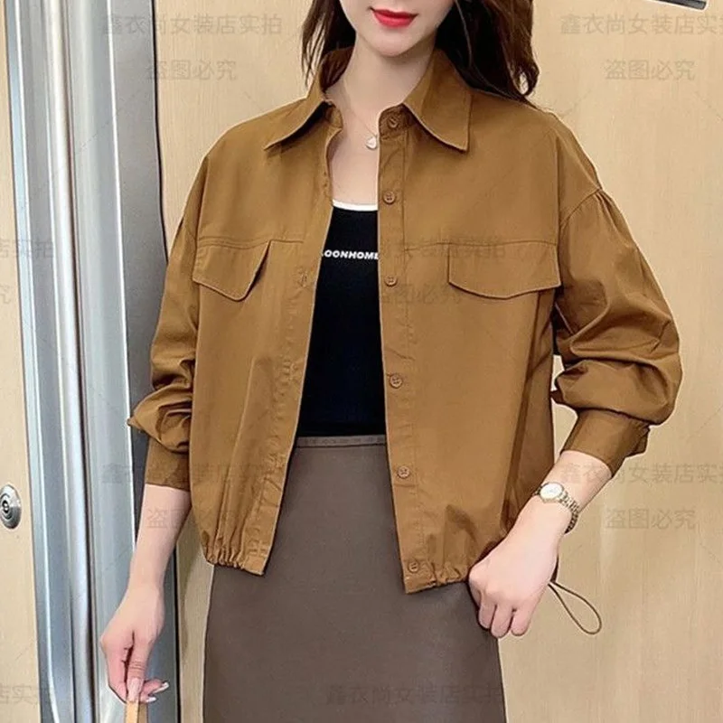 UQoEeyXGHere you can buy 2023 New Spring and Autumn Westernized Casual Loose Collar Long Sleeved Drawstring Solid Color Versatile Oversize Short Jacket with free delivery to your post office.