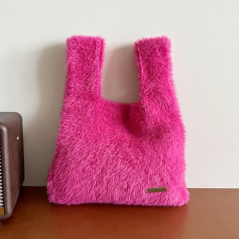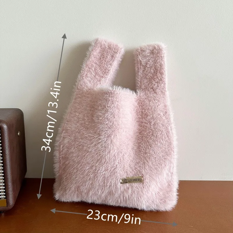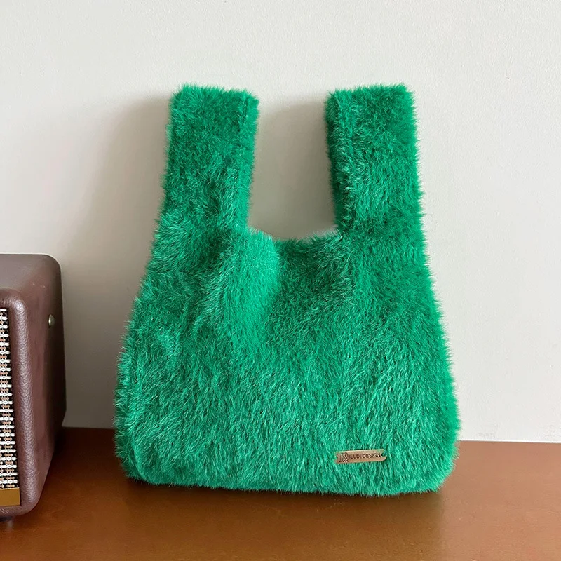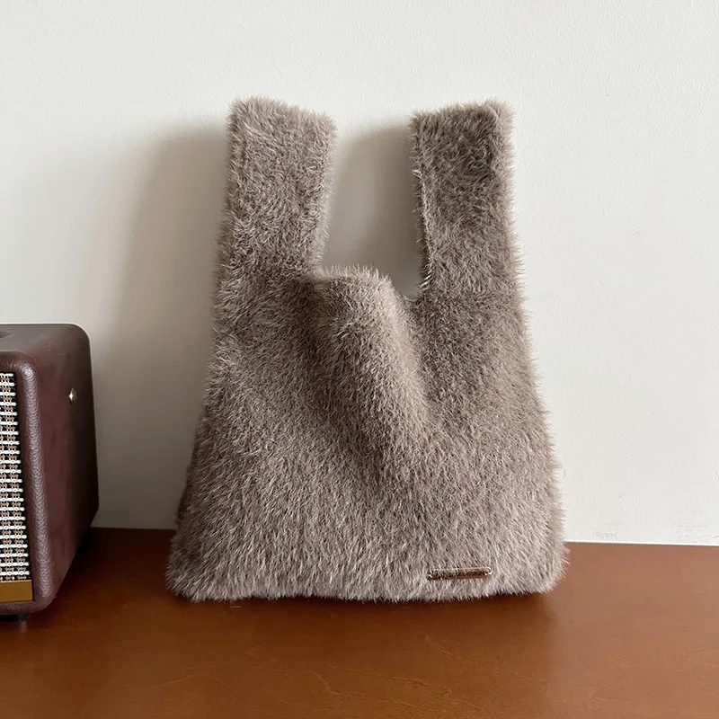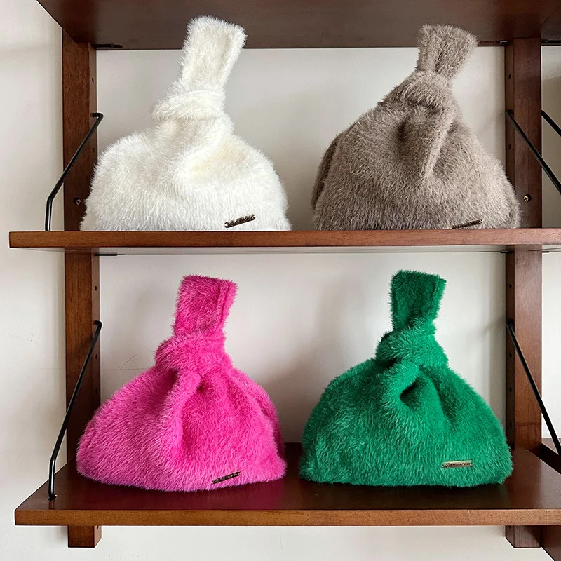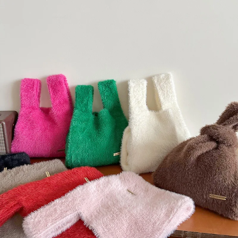 "2023 Solid Color Simple Knitted Plush Bag Korean Version Versatile Large Capacity Commuter Street Handbag Shopping Portable Bag" * Buy Now With Free Shipping Just For $0