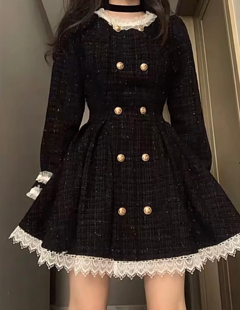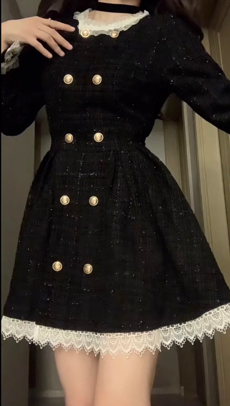 CwJTrhTceqHere you can buy 2023 Spring and Autumn New Black Premium Sweet Cool Small Fragrant Wind Palace Retro Ruffle Ribbed Tweed Princess Dress Women's with free delivery to your post office.