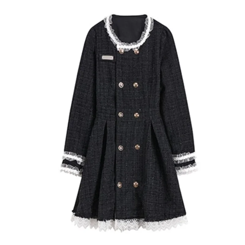 "2023 Spring and Autumn New Black Premium Sweet Cool Small Fragrant Wind Palace Retro Ruffle Ribbed Tweed Princess Dress Women's" * Buy Now With Free Shipping Just For $20