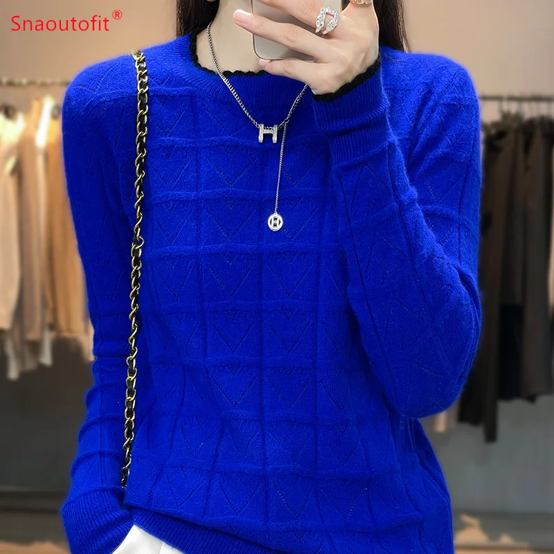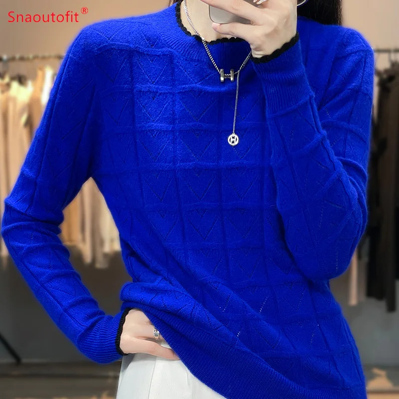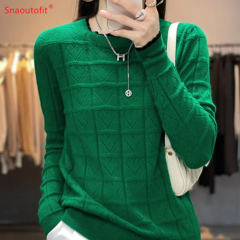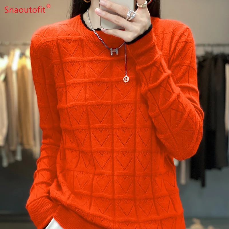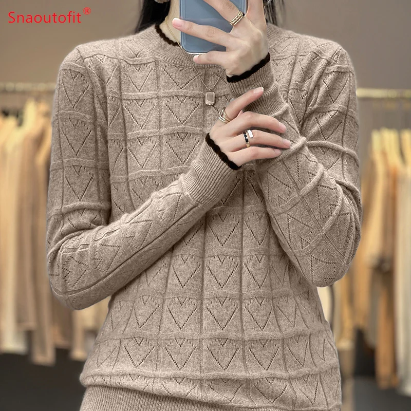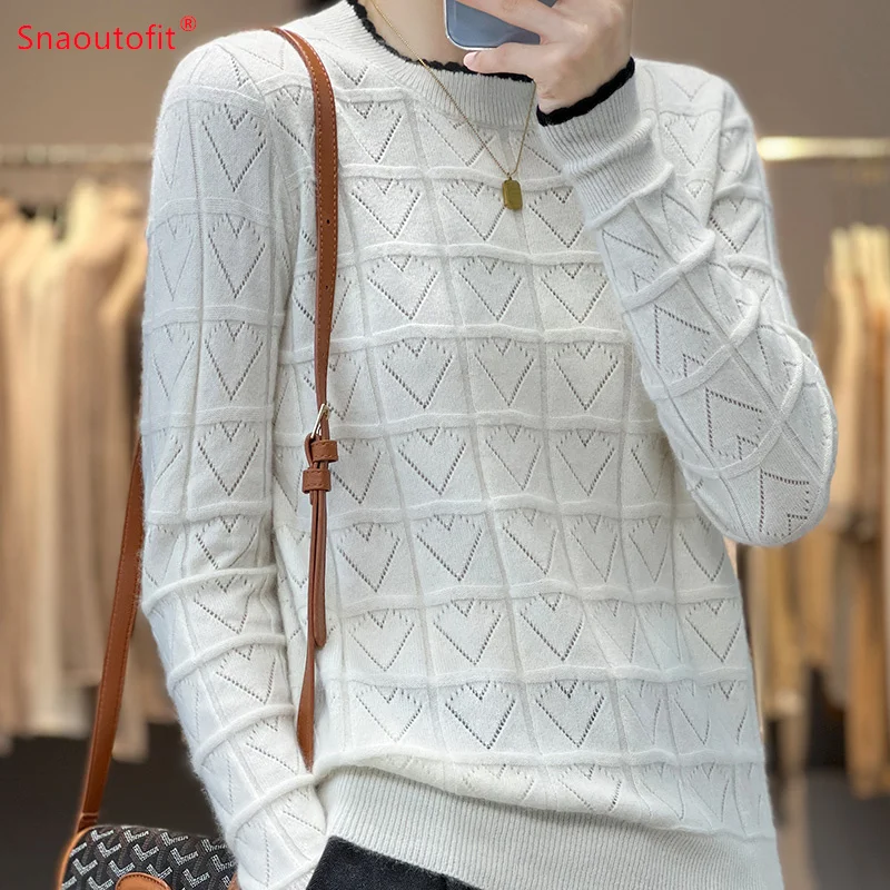 «2023 Spring and Autumn New Pure Wool Round Neck Jumper Love Hollow Knit Sweater Female Fashion Match Color Long Sleeve Pullover» по лучшей цене на рынке! Всего за 30$ (2850рублей)