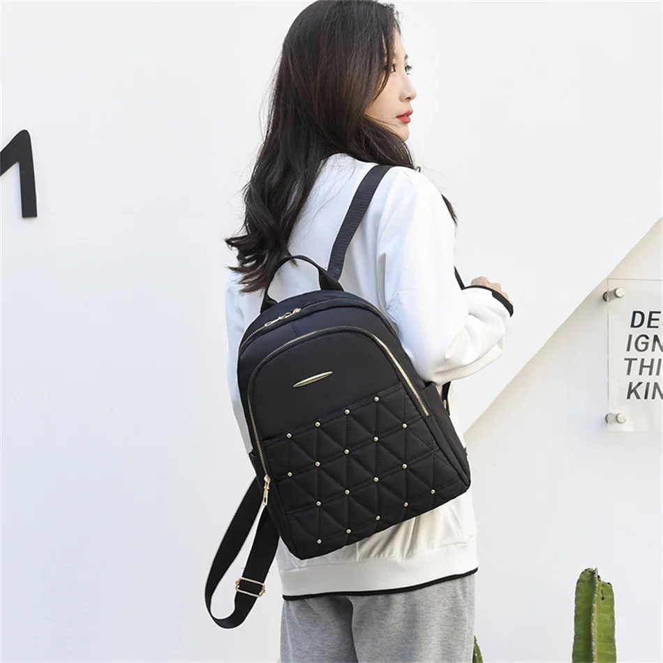 rraysLDCiHere you can buy 2023 Trend High Quality Ladies Oxford Backpack Casual Shoulder Bags Large Capacity Travel Rucksack with Rivet Diamond Design with free delivery to your post office.