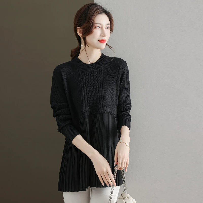 «2023 Women Brown Black Pullover Sweaters Fake 2 Pieces Bulky Rib Knitted Tops Pleated Chiffon Patchwork Design Classy Knitwear» по лучшей цене на рынке! Всего за 40$ (3800рублей)