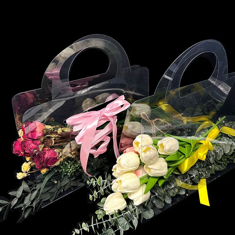 2023NEW Transparent Flower Box with Handle Portable Flower Packing Bags Gift Contatiner Handbag Wedding Wrapping Party Gift Box - Купить с бесплатной доставкой