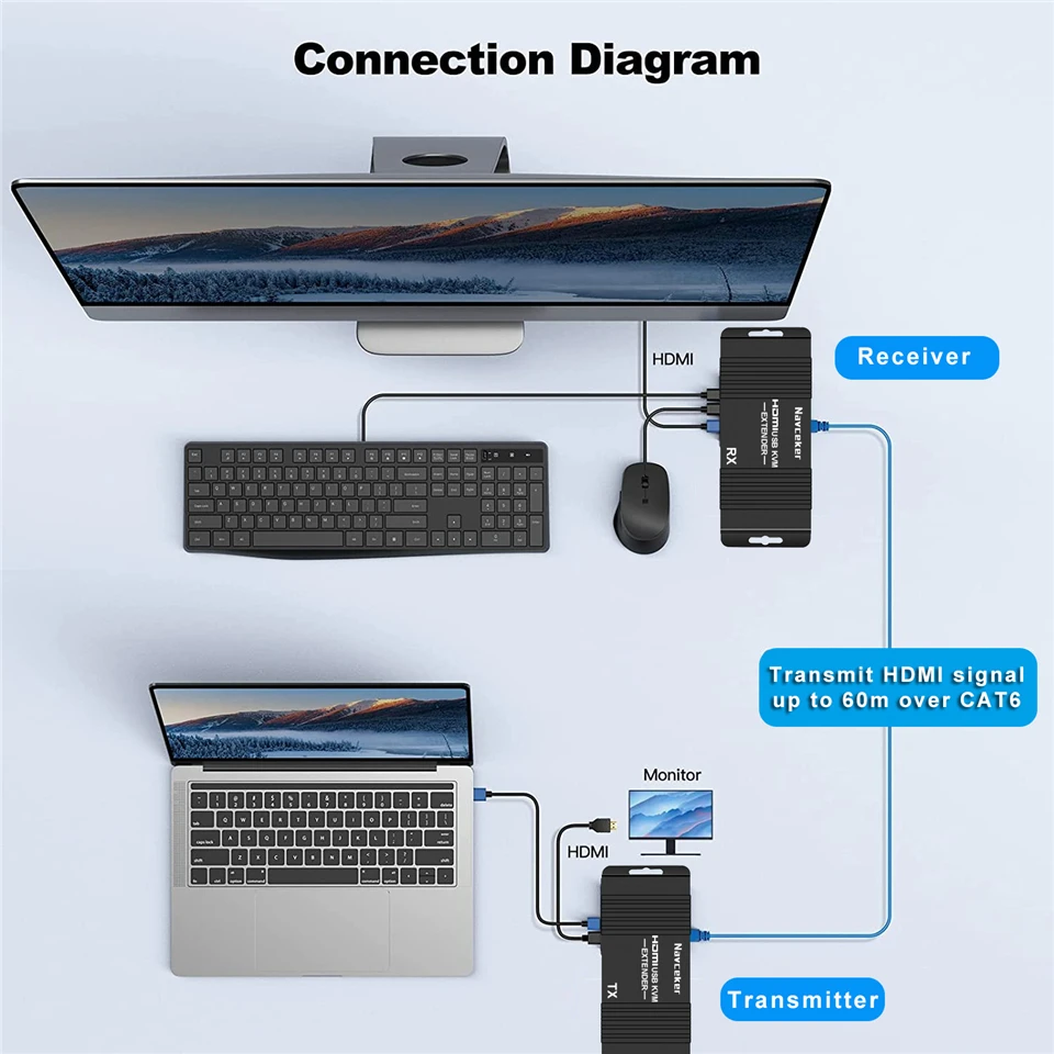 "2024 HDMI KVM Extender RJ45 HDMI USB Extender 60m over Cat5e/Cat6 POC HDMI Extender Mouse Transmitter Receiver for PC Computer" * Buy Now With Free Shipping Just For $49