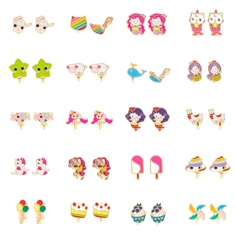 «20PRS Cute Animals Heart Unicorn Gold Small Clip on Earrings Without Piercing for Girls Party Sweet No Hole Ear Clip Earrings» по лучшей цене на рынке! Всего за 6$ (570рублей)