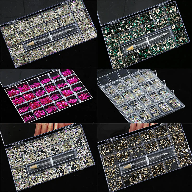 "20Shape/box flat-back rhinestones AB artificial crystal glass with 1 pick up gems pen Colorful nail charms * 400/480/1000/2000pc" * Buy Now Just For 25$