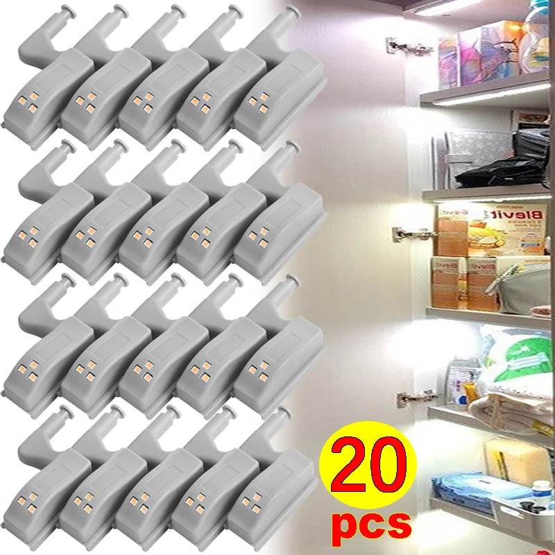 20pcs Closet LED Lamp Battery Control Cabinet Lamp Inner Hinge Induction Lights Wardrobe Cupboard Sensor Light Home Mini Lamps - Купить с бесплатной доставкой