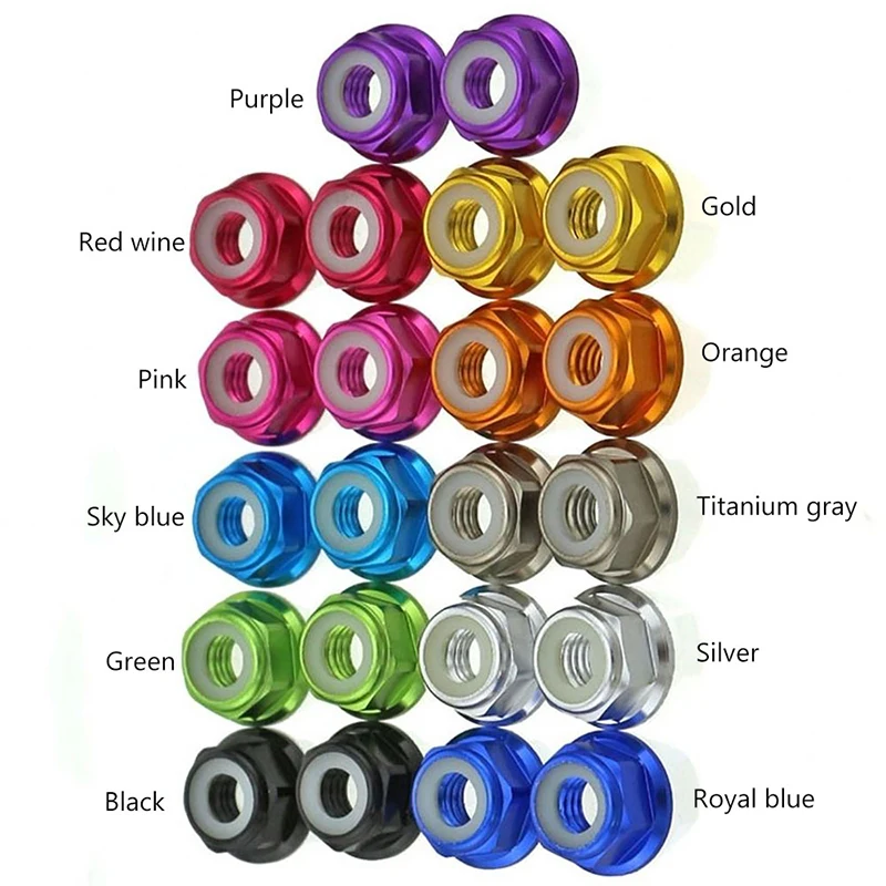 "20pcs Grade 4.8 Multicolor Aluminum Alloy Flange Lock Nuts M2 M3 M4 M5 M6 Thread Pitch 0.4~1mm Nylon Ring Self-Locking Screw Cap" * Buy Now Just For 5$