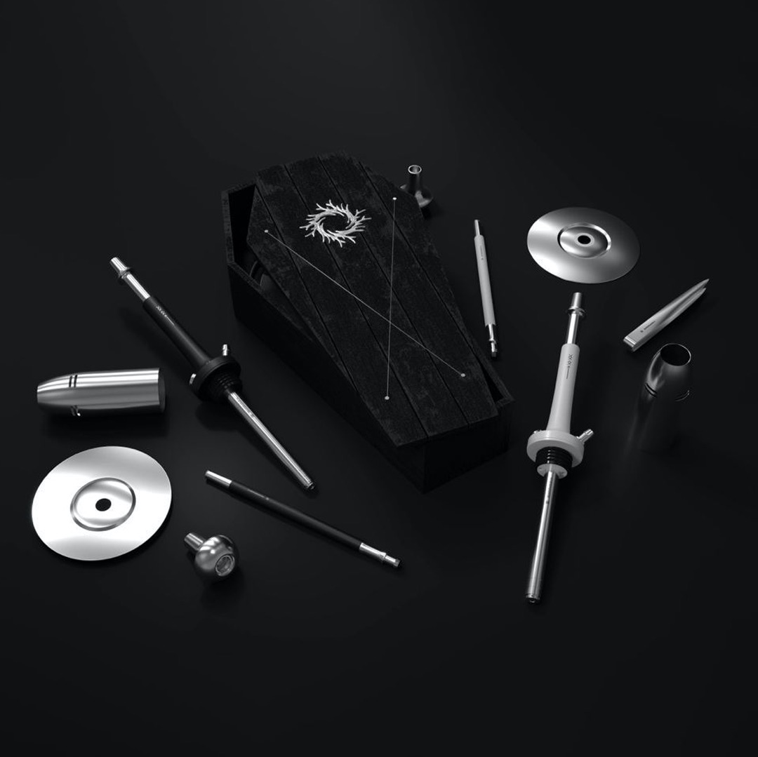 Комплектация: шахта, блюдце, шланг, мундштук в фирменной коробке в форме гроба.