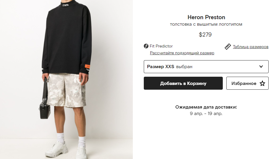 Черный лонгслив из коллекции сезона весна-лето 2020 года украшен белыми кириллическими надписями «Стиль», на создание которых Херона Престона вдохновило увлечение русской культурой и атрибутикой.