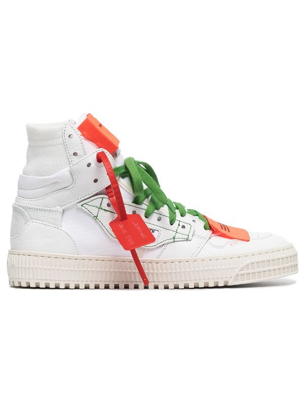 Off-White — признанный лидер во всем, что касается streetwear-культуры. Бренд представляет модели, которые гармонично сочетают в себе высокую моду и спортивный стиль. В новую коллекцию вошли высокие белые кроссовки Off-Court 3.0 из кожи от Off-White. Закругленный носок, шнуровка спереди, перфорированная деталь, принт с логотипом и рифленая резиновая подошва.