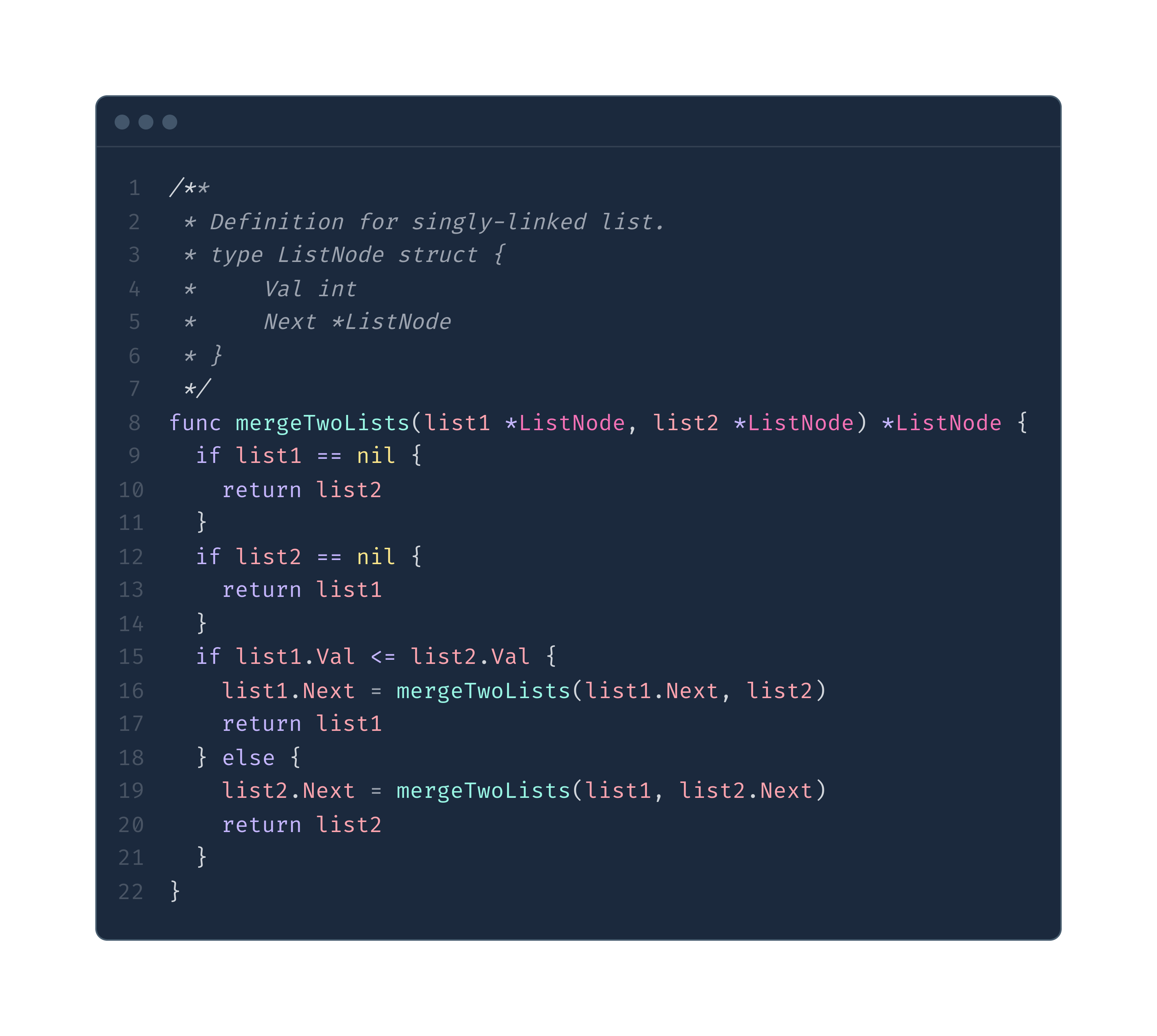 list1.Next = mergeTwoLists(list1.Next, list2)