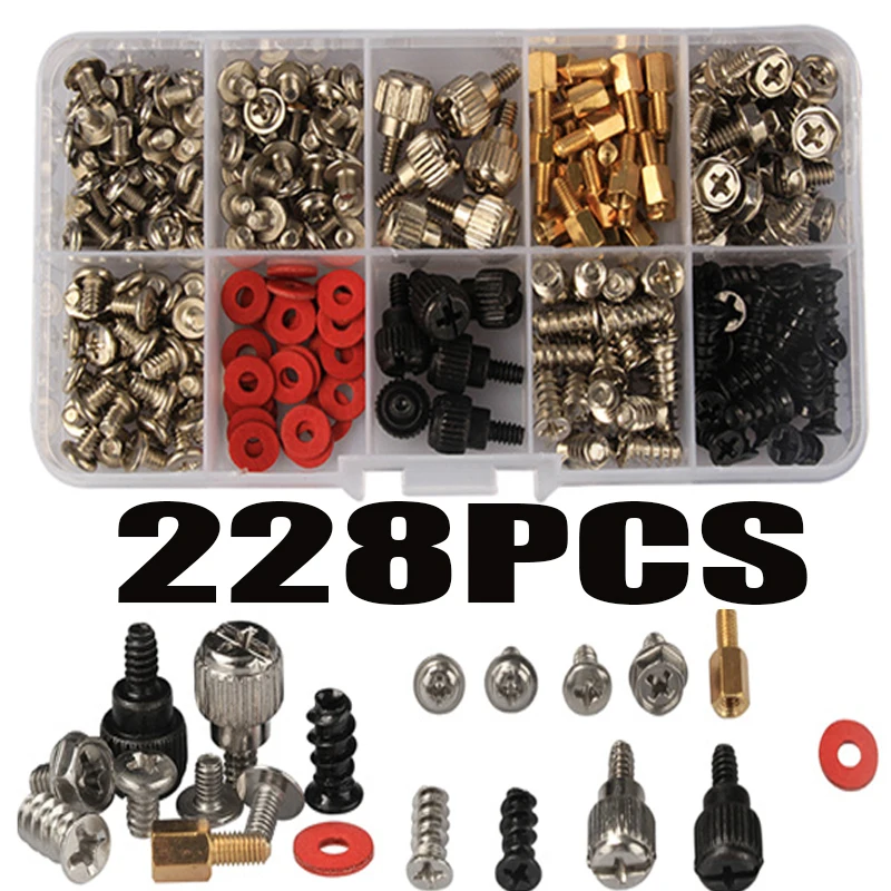 228pcs Computer PC Case Hard Disk Drive Fan Motherboard Power Supply Server HDD PSU PCI Mount Repair DIY Screw Bolt Kit Set - Купить с бесплатной доставкой