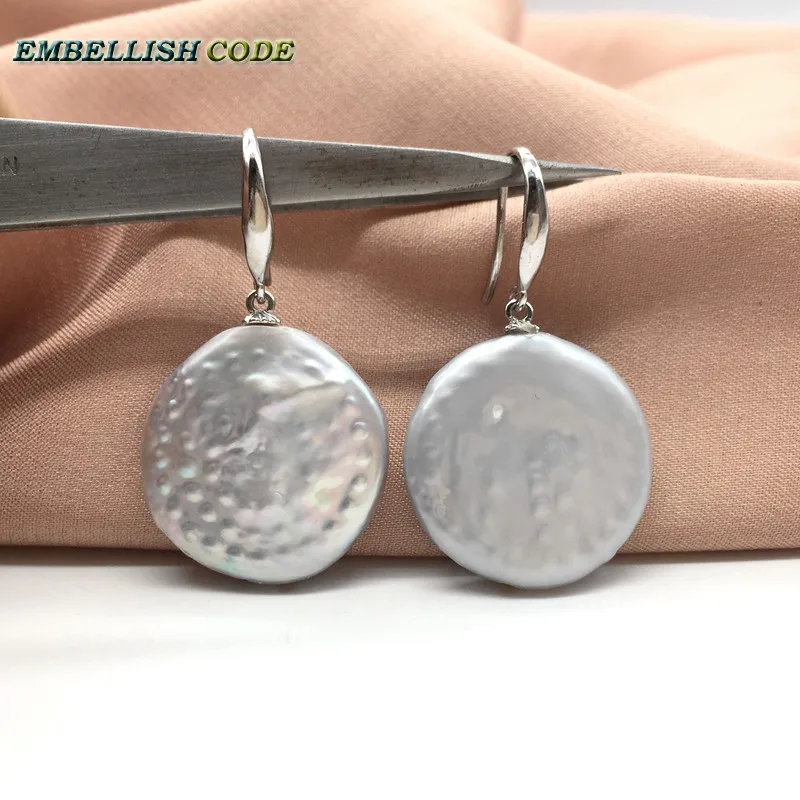 "22mm Amazing Large Baroque Pearl Statement Necklace Hook Dangle Earring Set Gray Flat Round Coin Button Shape Freshwater" * Buy Now Just For 35$