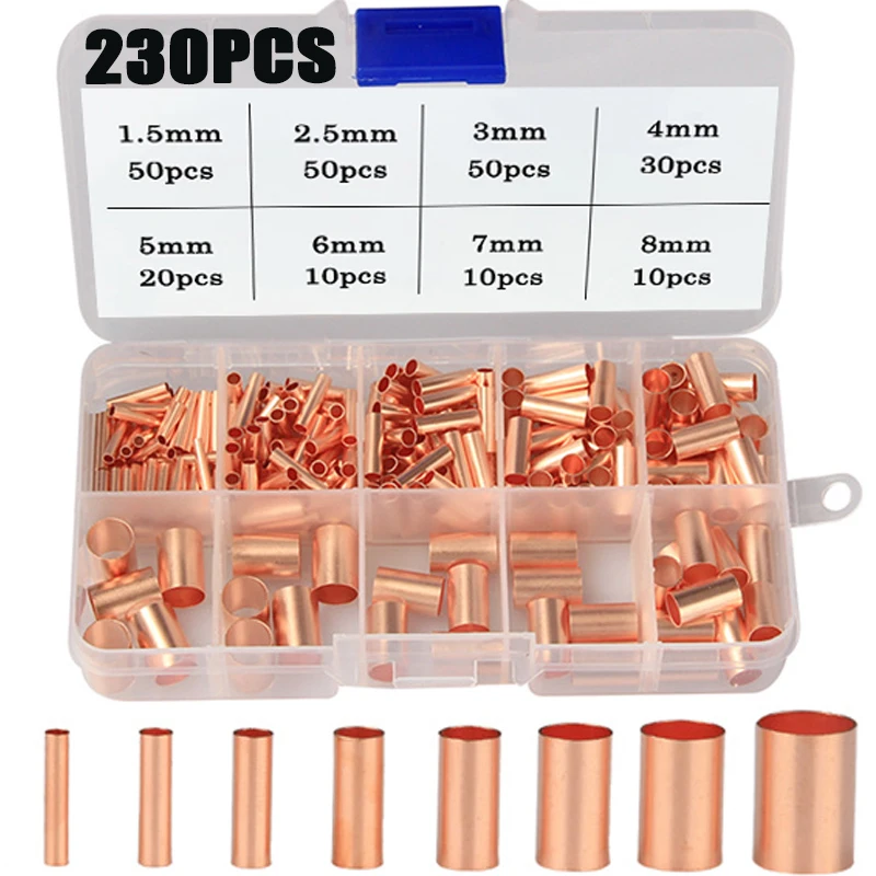 poPBwLCCfHere you can buy 230pcs 1.5-8mm Copper Connecting Pipe Wire Joint Small Copper Tube Intermediate Joint Direct Connection Cold Pressed Terminal with free delivery to your post office.