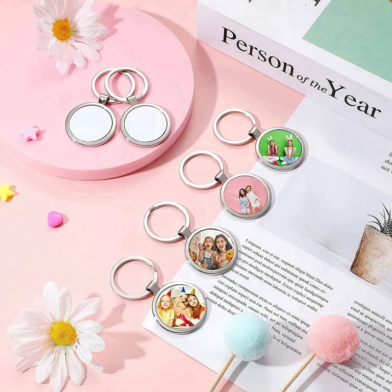 24 Pcs Sublimation Blank Keychain Round Heat Transfer Keychain Metal Board Key Rings Thick Sublimation Photo Keychain - Купить с бесплатной доставкой